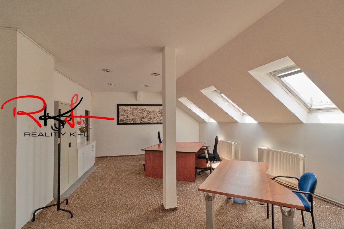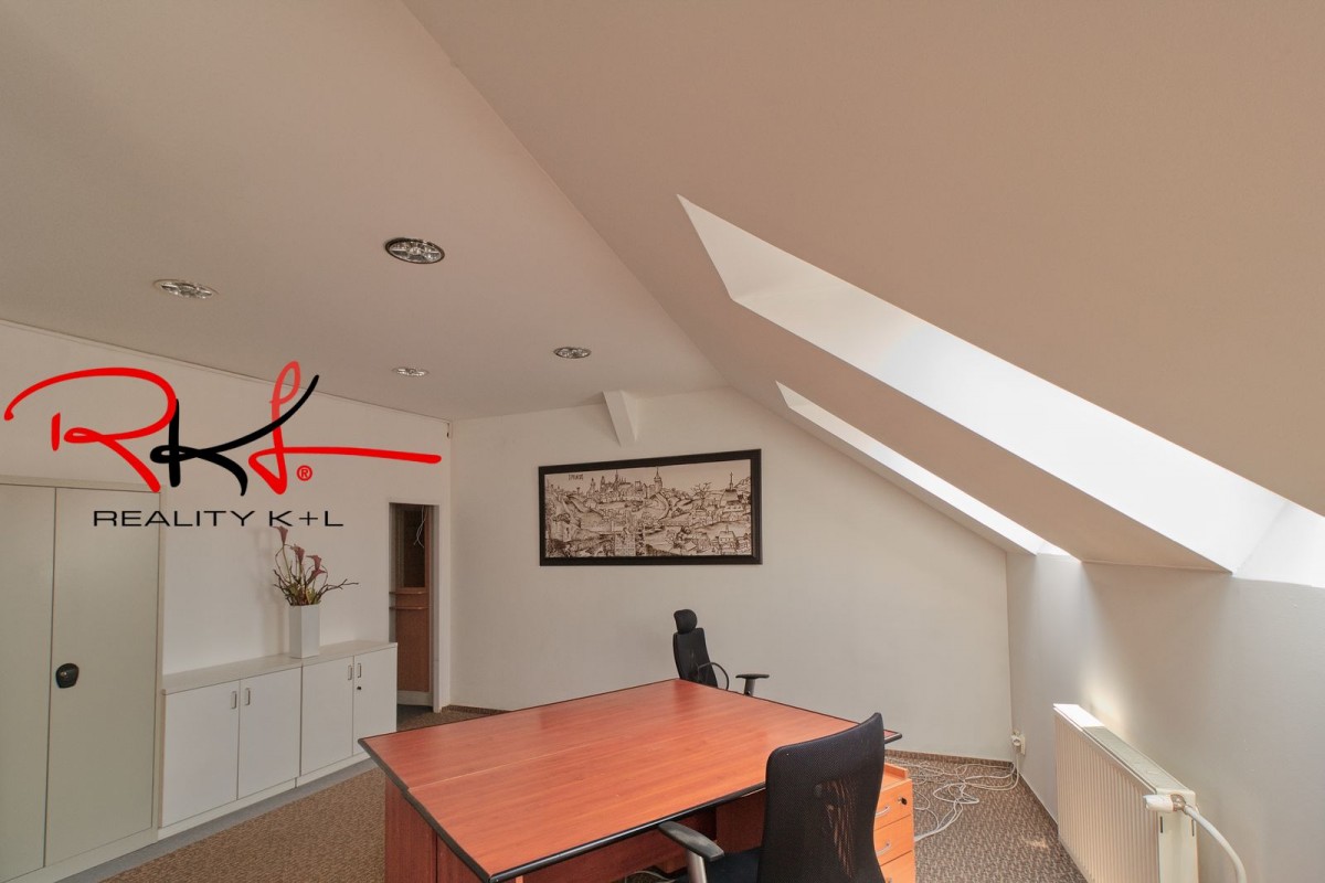 Prostorná kancelář je vybavena kuc...hyňskou linkou se spotřebiči. K objektu náleží menší sklad a na společné vstupní chodbě je k dispozici sociální zařízení a čekárna.