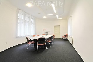 Obě kanceláře jsou velice vzdušné a světlé, s vysokými stropy 3, 7m, vlastní kuchyňkou a sociálním zařízením (sprchový kout, sociální zařízení WC). Jsou částečně zařízené, dle dohody je možné nábytek vystěhovat. Oválná kancelář je průchozí do zadní kanceláře viz plánek.