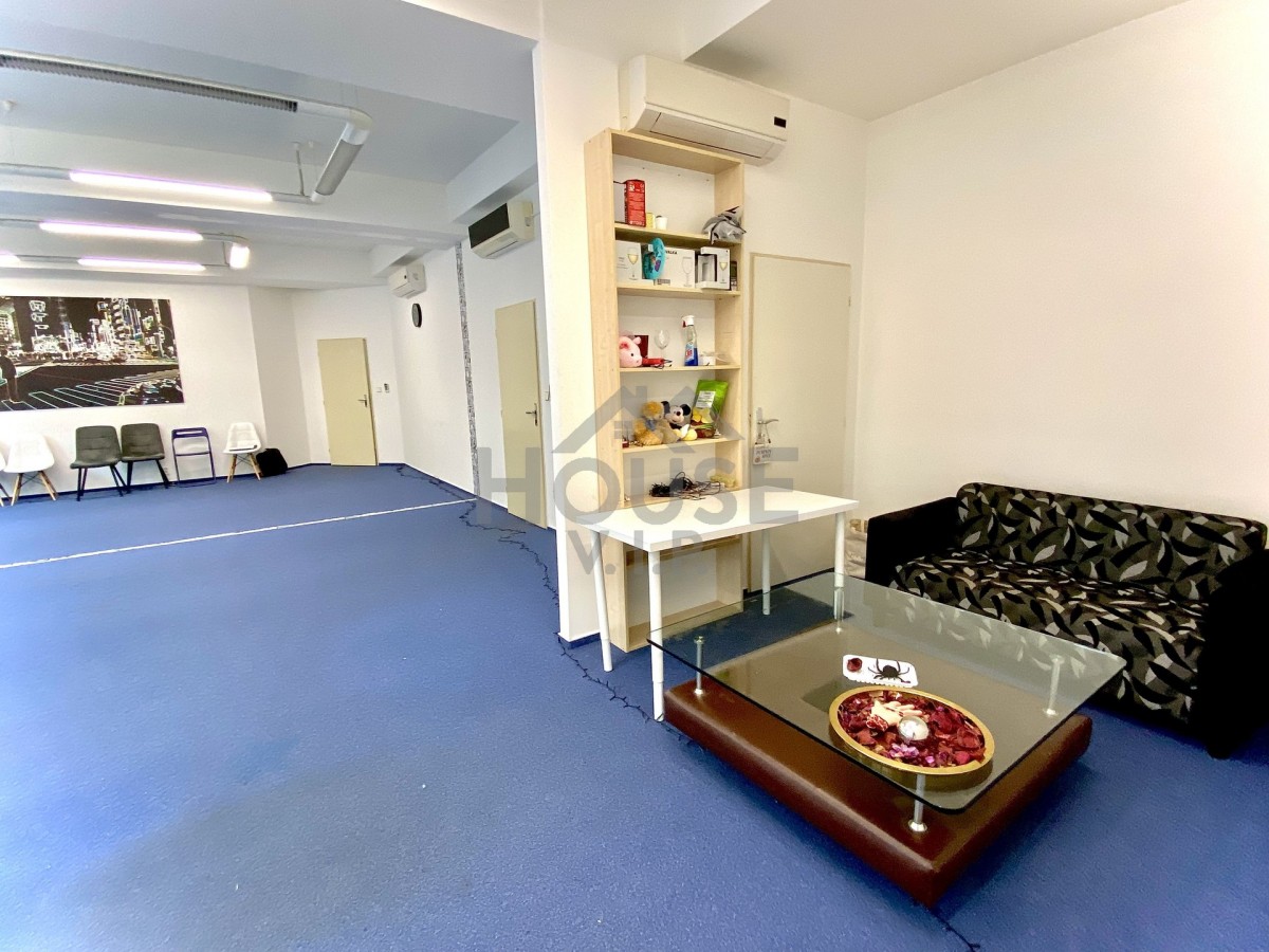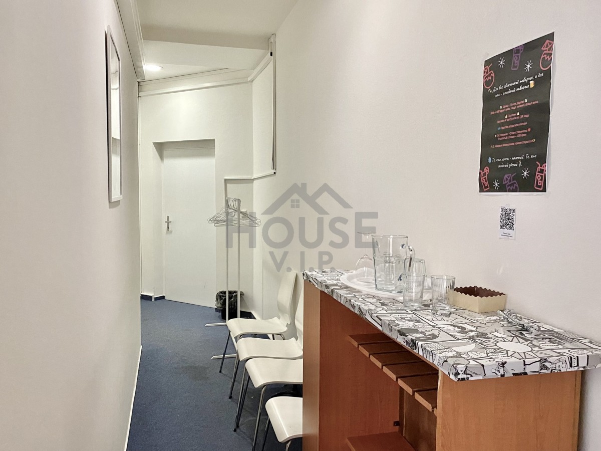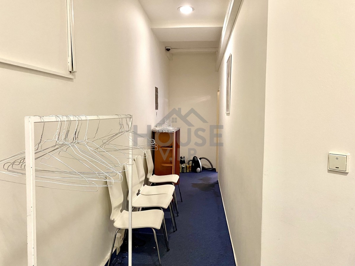 Prostorné místnosti: kancelář zahrnuje dvě místnosti, vlastní chodbu (cca 10m x 2m) a odkládací místnost (cca 4m x 3m).