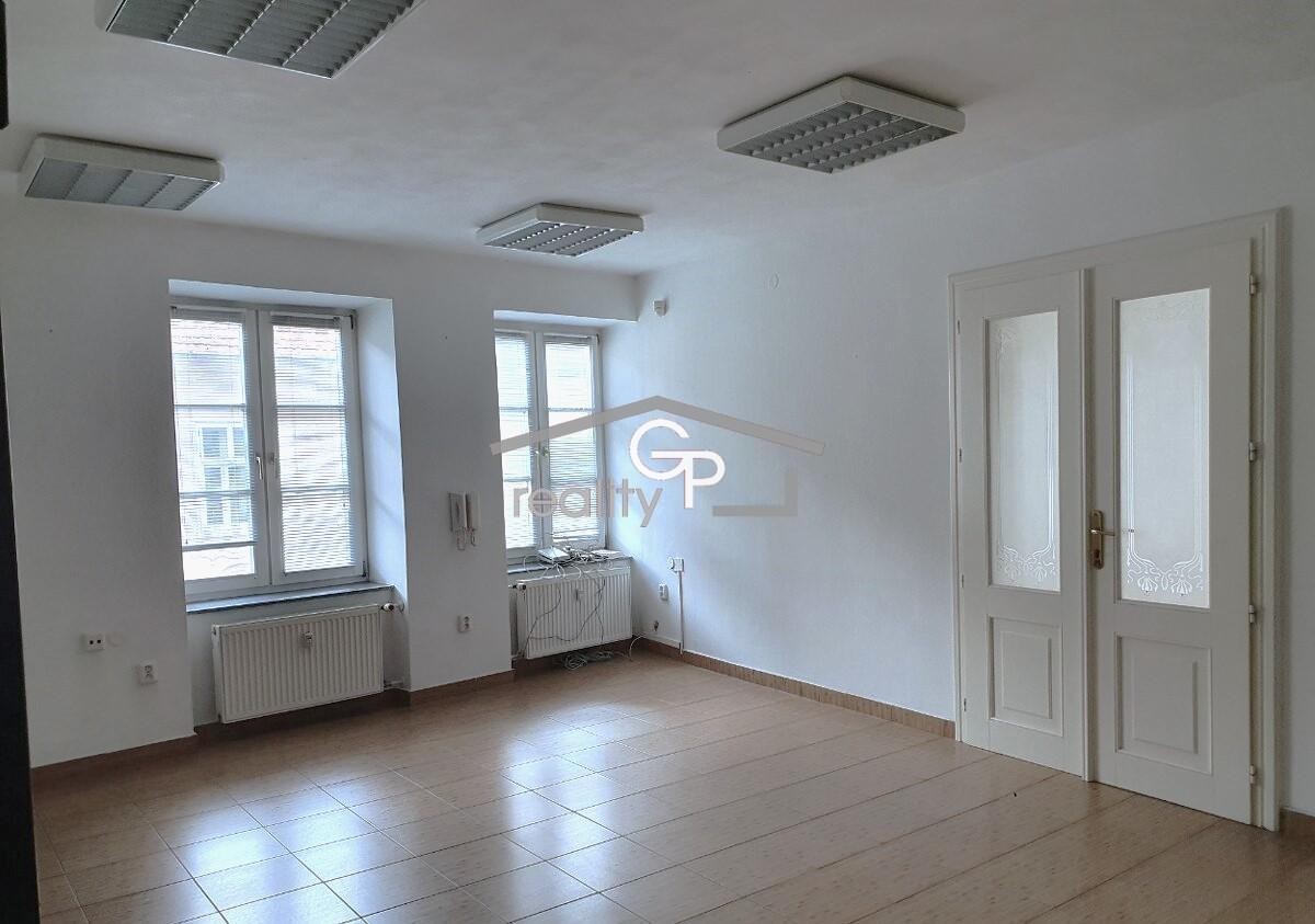 Nabízíme pronájem kanceláře o celkové rozloze cca 80 m2, která se skládá ze dvou místností o výměře 31 m2 a 34, 5 m2, dále chodby a sociálního zařízení, 2. patro, ul. Široká v centru Če...ských Budějovicích. Nebytové prostory se nabízí bez vybavení. Ke kanceláři náleží skladovací prostory, chodba, toaleta. Okna jsou orientována na S. Podlahovou krytinu tvoří dlažba. Možné využití k administrativní či lékařské činnosti. Dům je zděný bez výtahu. K dispozici ihned. Měsíční nájem činí 13. 000, - Kč + 3. 000, - Kč voda, topení + el. - přepis na nájemce, kauce je ve výši 13. 000, - Kč + provize RK jeden měsíční nájem.