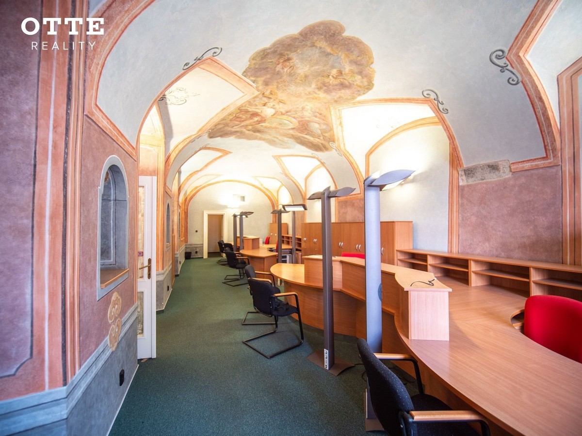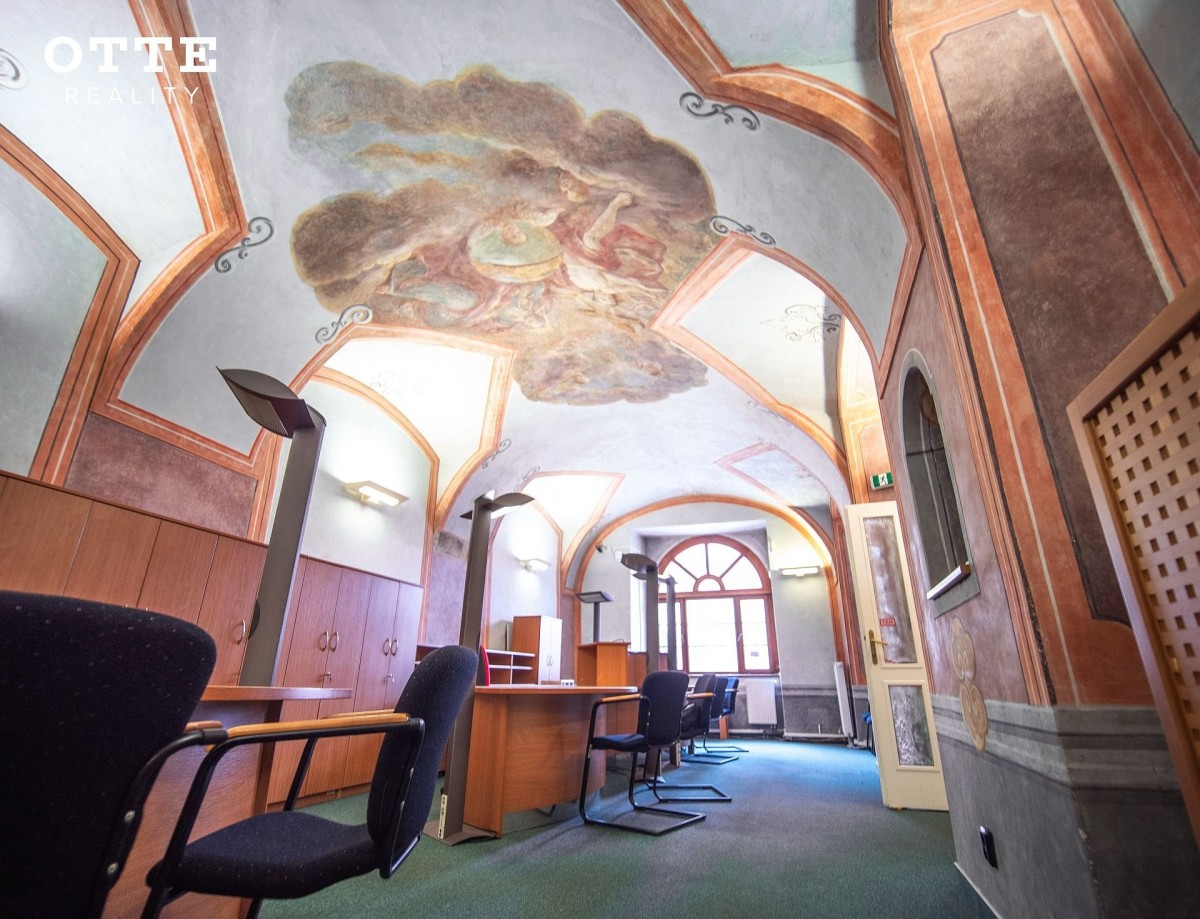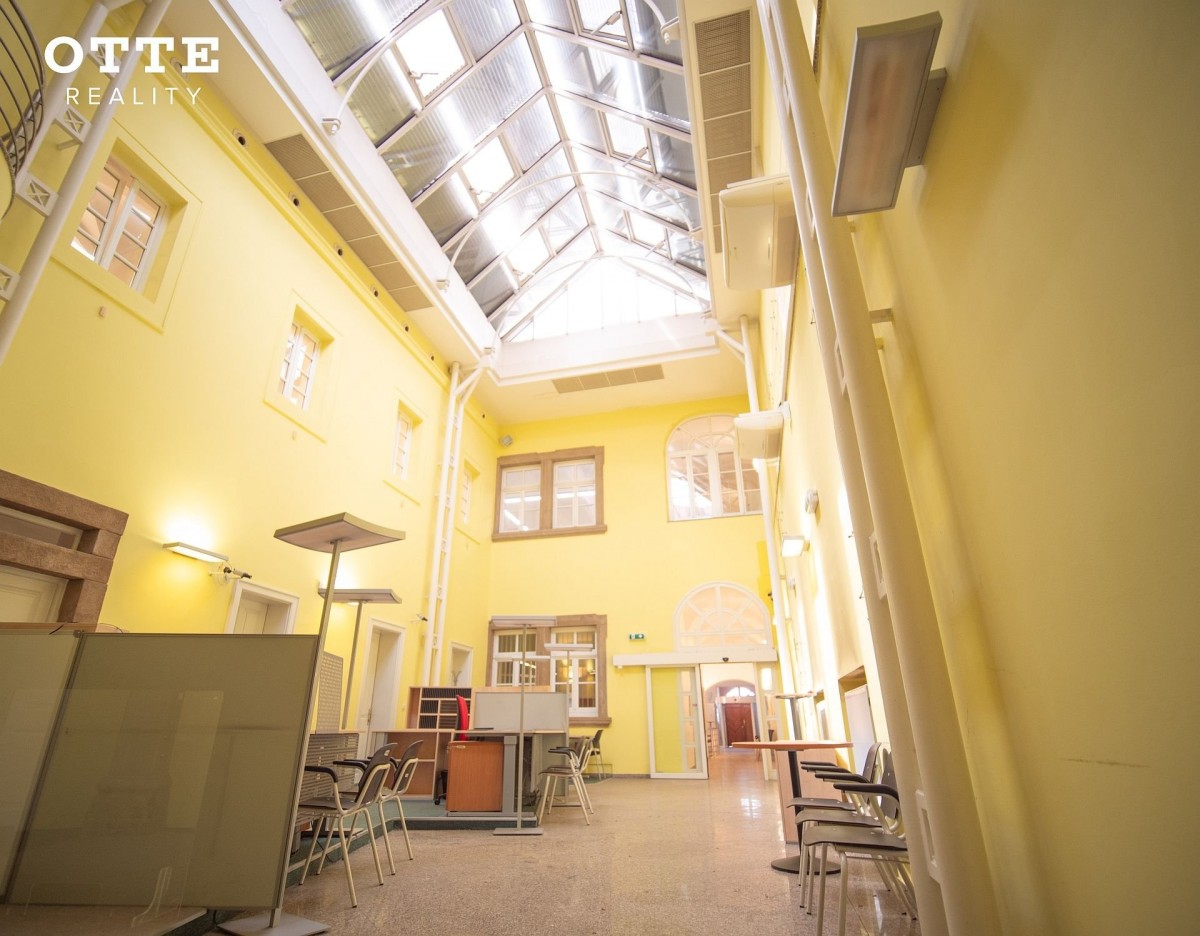 Přízemní prostory s bezbariérovým vstupem z ulice tvoří soubor několika kanceláří s dominantními bohatě zdobenými klenbami. Atraktivní je i zastřešené atrium, vnitroblok, který byl užívám také k administrativní činnosti jako kontaktní místo pro klienty. Velikost přízemí je cca 318 m2.
