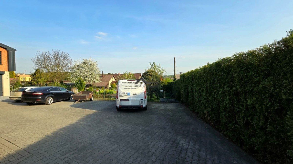 Na pozemku jsou 3 parkovací místa a popřípadě ještě před bránou jsou taky 3 parkovací místa.