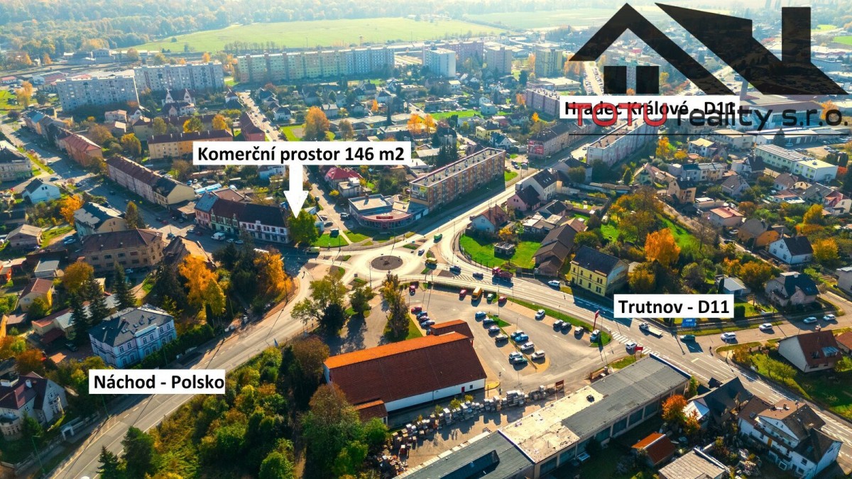 Nabízíme k pronájmu velmi lukrativní komerční prostor v Jaroměři, ul. Svatopluka Čecha, část Pražské Předměstí. Tento výjimečný prostor s kolaudací 2012 a podlahovou plochou 153 m2 se nachází u kruhového objezd...u v centru města na hlavním tahu Hradec Králové - Trutnov - Náchod. Nemovitost nabízí široké využití - kamenná prodejna, malá výroba, e - shop, kanceláře, atd. Parkování na ulici nebo na oploceném pozemku - zadní vstup. Dispozice: vstupní hala 146 m2, kuchyňka + šatna 4 m2, toalety 3 m2. Vstupní výloha. Možnost umístění banneru na domě. Topení plynové. Na podlahách dlažba. Nemovitost má vlastní měřidla energií. Volné po dohodě. Cena měsíčního nájemného ve výši 26. 000, - Kč. Vratná kauce 2 krát nájem. Provize RK jeden nájem. Doporučujeme Vám prohlídku. Více info u makléře.