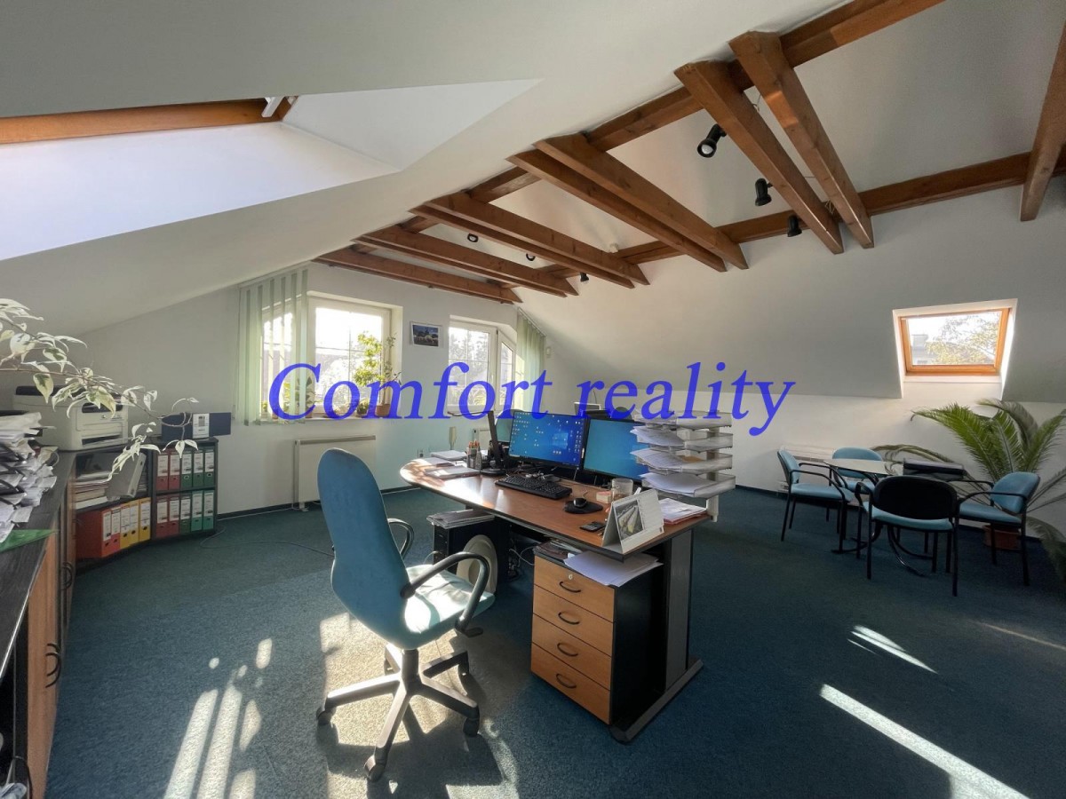Ve výhradním zastoupení majitele nabízíme k pronájmu nebytový prostor celý dům (sídlo firmy) na ul. Mitrovická v Ostravě, Nové Bělé. Objekt se nachází na strategické adrese dostupné jak MHD, tak téměř jakýmikoliv vozidly.... Samotný objekt sloužil jako sídlo firmy se zázemím pro zaměstnance. Kolem objektu jsou zpevněné betonové plochy (cca 450 m2 sloužící jako skladovací plocha vhodná např. i pro parkování či jako manipulační prostor k různému využití. Pozemek je oplocen, kdy vjezd na zpevněnou plochu je vraty 6m širokými. V objektu je mimo kanceláří v horním patře (plocha cca 115m2, tj. 4 místnosti 39, 31, 13 a 12 m2 + kuchyňka a sociální zázemí) také v přízemí zázemí pro zaměstnance ve formě šaten se sociálním zázemím, dále skladové prostory a garáž o ploše 33 m2 (4, 9 x 6, 8 m) kde je umístěna montážní jáma (1, 7 m hluboká). Vjezd do garáže je vraty o rozměru 3(š) x 2, 95 metrů. Objekt je napojen na obecní vodovod, elektřinu a kanalizaci. Vytápěny jsou aktuálně z části horní kanceláře a to tepelným čerpadlem, ostatní prostory byly v případě potřeby temperovány přímotopy. Objekt má hlavní jistič 3 krát 32A. Volné dle dohody. Pro více informací kontaktujte makléře.