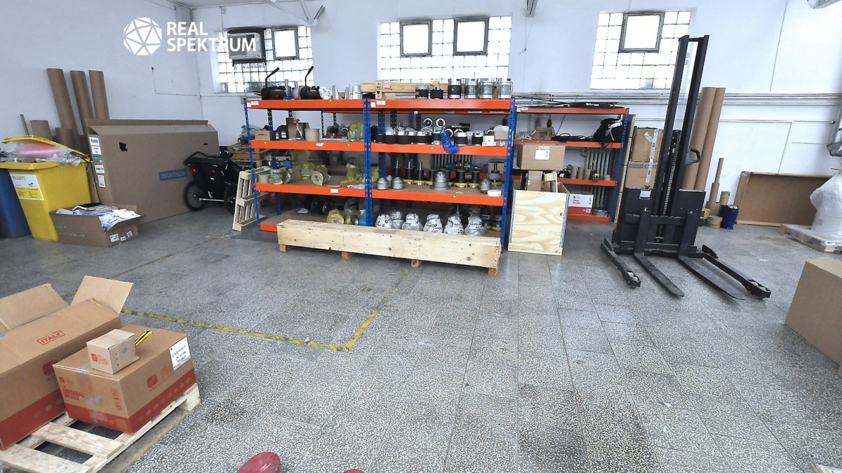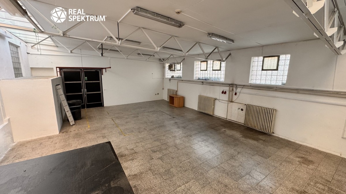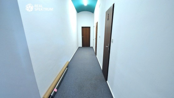 6 kanceláří s libovolným využitím, prostorný sklad 91 m2 s bezbariérovým vjezdem pro zásobování zbožím.