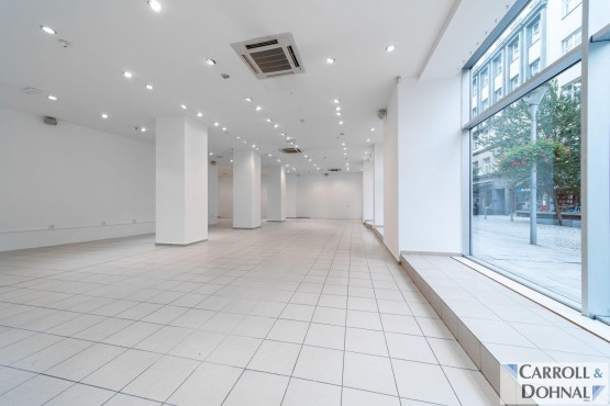 Prostor...y s celoplošnými výlohami mají celkovou rozlohu 306m2. Výlohy jsou z ulice Zámecká i Puchmajerova. Bezbariérový vstup z ulici Zámecká.