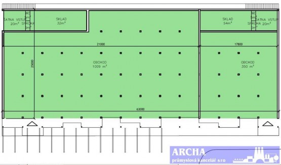 Stavba OC má zastavěnou plochu 1. 575 m2, je dvoupodlažní a je navržena v modulu 4, 5 m.