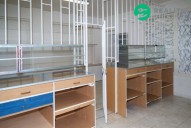 Prostor je vybaven pulty s vitrínami, který je oddělen od zákazníků mřížemi. Dále je zde k dispozici trezor o váze 480 kg. a tři volně stojící regály.