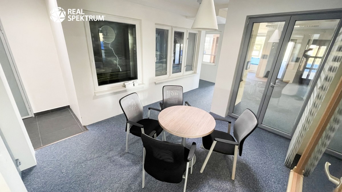 Jednotka je po celém obvodu prosklená, s výrazným přísunem denního světla a možností viditelné prezentace značky. Po předchozím nájemci může po dohodě zůstat částečná dispozice – recepce, zasedací místnost, dvě samostatné kanceláře, kuchyňka a serverovna. Zbytek plochy tvoří otevřený prostor vhodný pro prezentaci produktů či variabilní uspořádání dle konceptu nájemce.