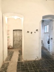 Interiér má stav hrubé stavby a prostory jsou možné propojit s dalšími prostory o vel. 35 m2, mají velké vchodové dveře s okny do ulici.