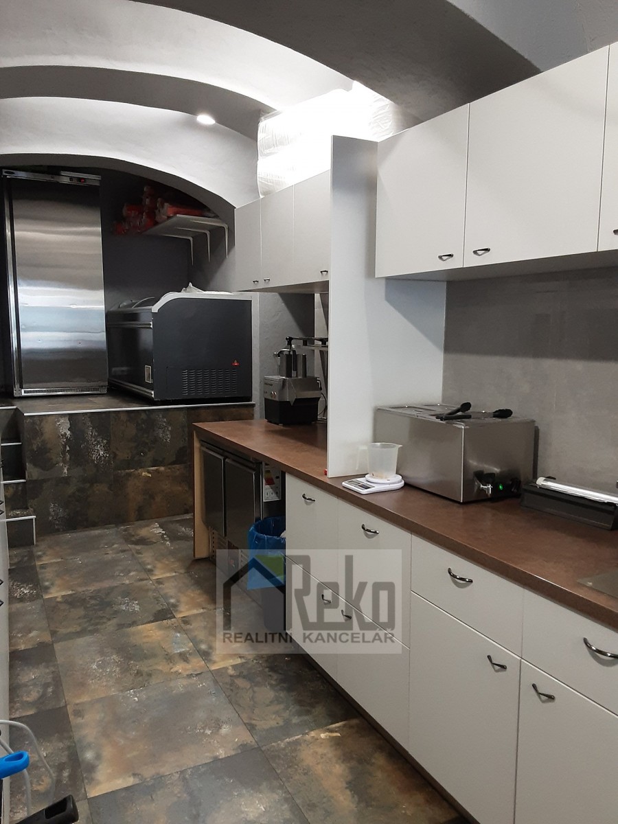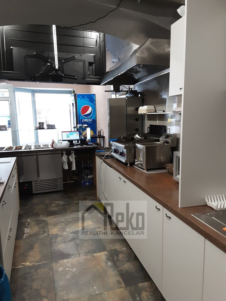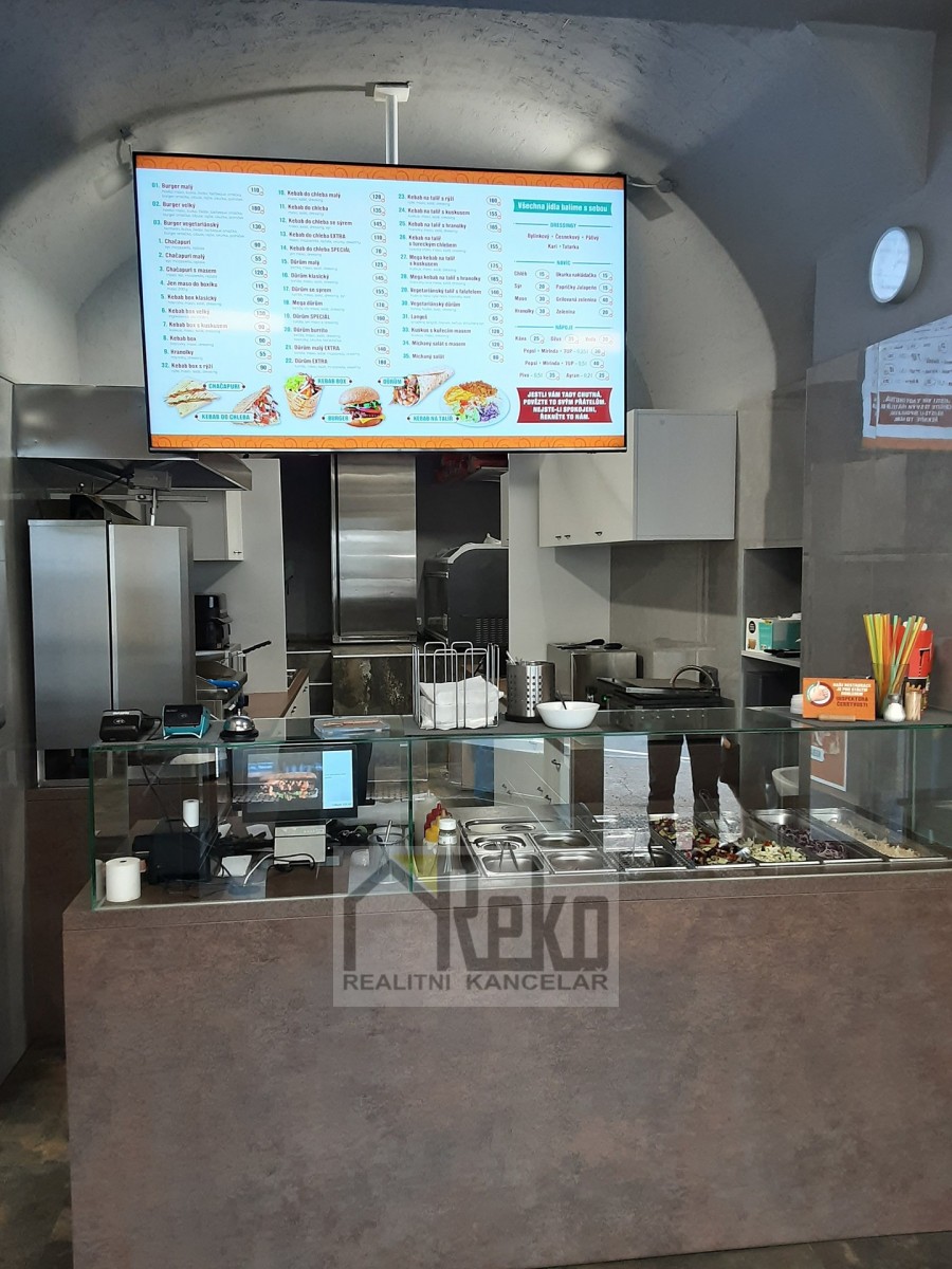 Jedná se o zavedené bistro rychlého občerstvení, které současný nájemce přenechá za úplatu 1. 250. 000, - Kč. Prostory s výměrou 50, 5 m...2 jsou po kompletní rekonstrukci (stěny, obklady, podlahy, odpady, gastronomické zařízení). Prostor je rozdělen na prodejní místo s možností posezení, dále na přípravnu, sociální zázemí (sociální zařízení WC s umyvadlem) a úklidovou místnost s výlevkou. Veškeré zařízení a vybavení je v ceně úplaty. Do těchto prostor jsou dva přístupy, jeden z ulice a druhý ze dvora, kde lze parkovat s jedním autem a zároveň odtud přebírat zboží.