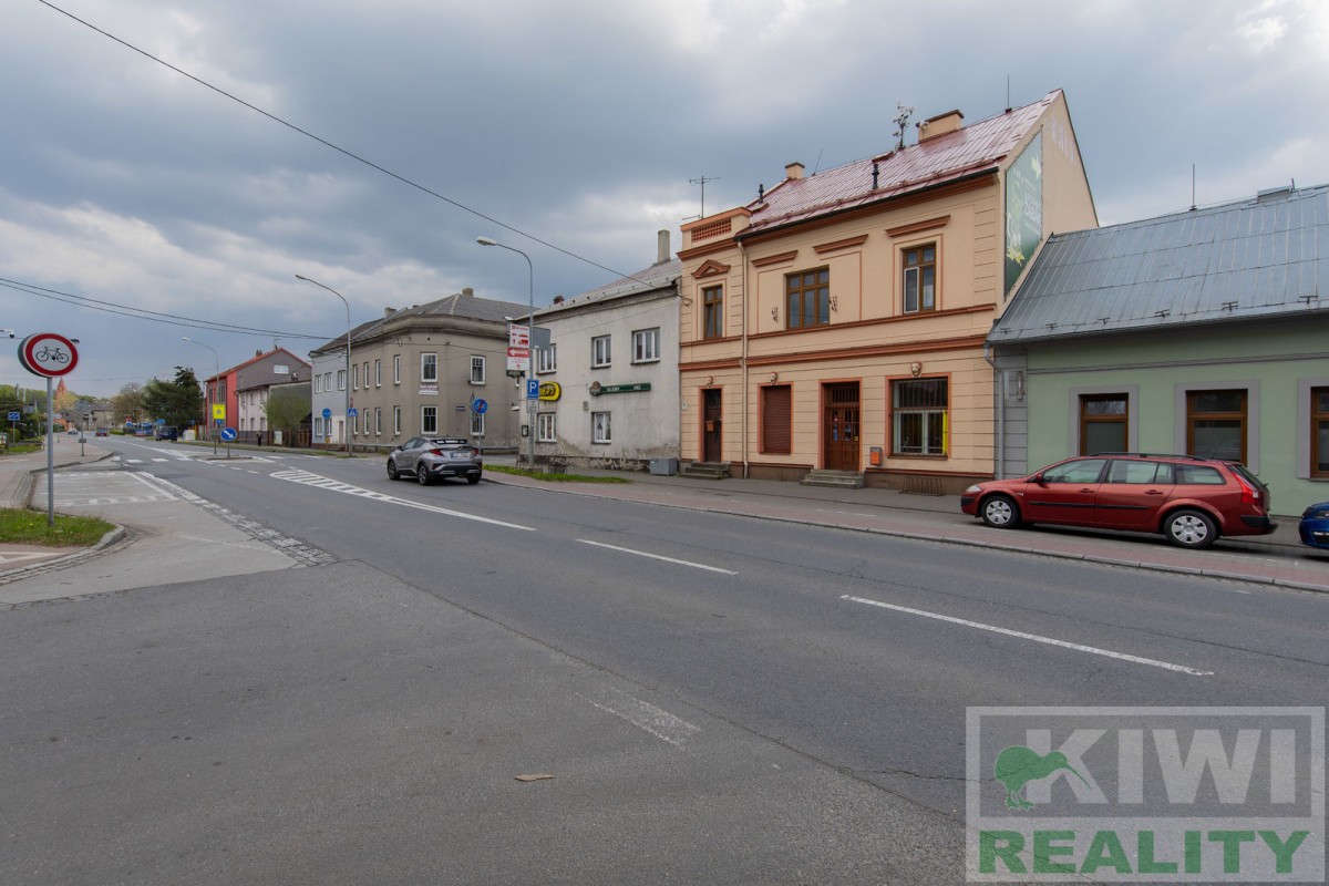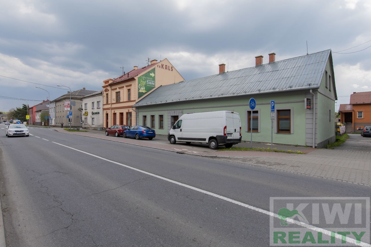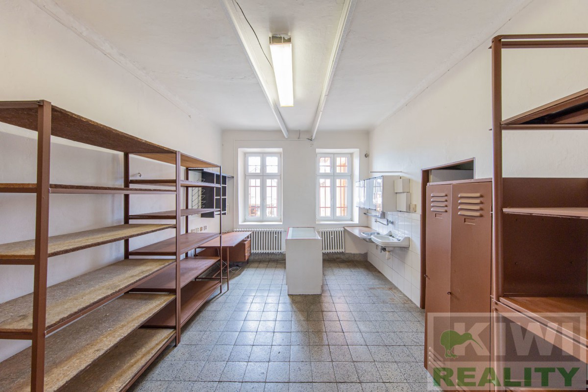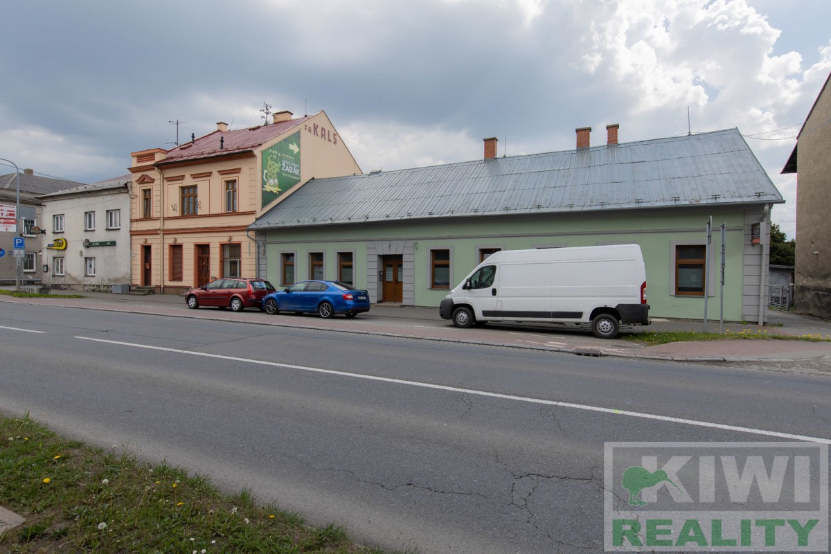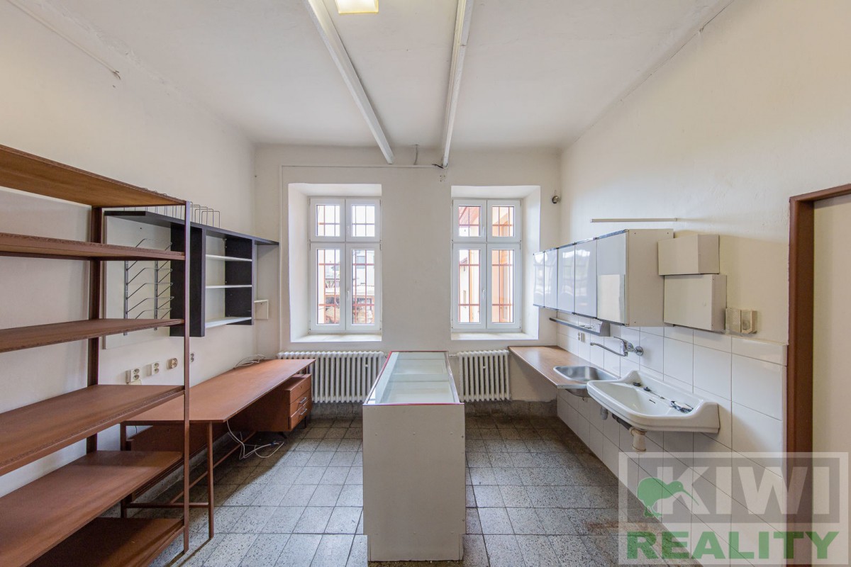 Prostory se skládají z velké vstupní místnosti o rozloze 40 m2 se samostatným vchodem z hlavní siln...ice (prodejna, kancelář, sklad). Dále je zde zadní místnost 20 m2 (kancelář, kuchyň), menší místnost 10 m2 (sklad) a sociální zařízení WC s umyvadlem. Před budovou se nachází vlastní parkoviště pro více aut. V minulosti prostory sloužily jako prodejna, trafika se smíšeným zbožím, potraviny nebo pošta expres (od roku 1991 do 2022).