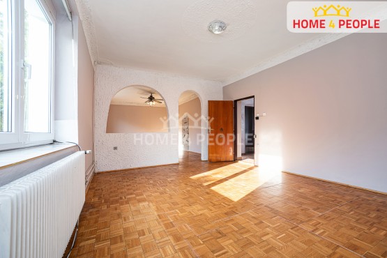 Dům je v udržovaném původním stavu s plynovým kotlem, vytápění etážové, bez vybavení. Dům je vhodný k estetickým úpravám. Nájemce si může dům předělat dle vlastní potřeby. Pokoje jsou velké a prostorné. Koupelna s vanou a sociální zařízení WC. Na podlahách je lino, parketová podlaha, dlažba. Velkou výhodu je možnost využívání dvou až osmi parkovacích míst na zahradě cca 654 m², která je kolem domu. Parkování před domem – modré zóny.