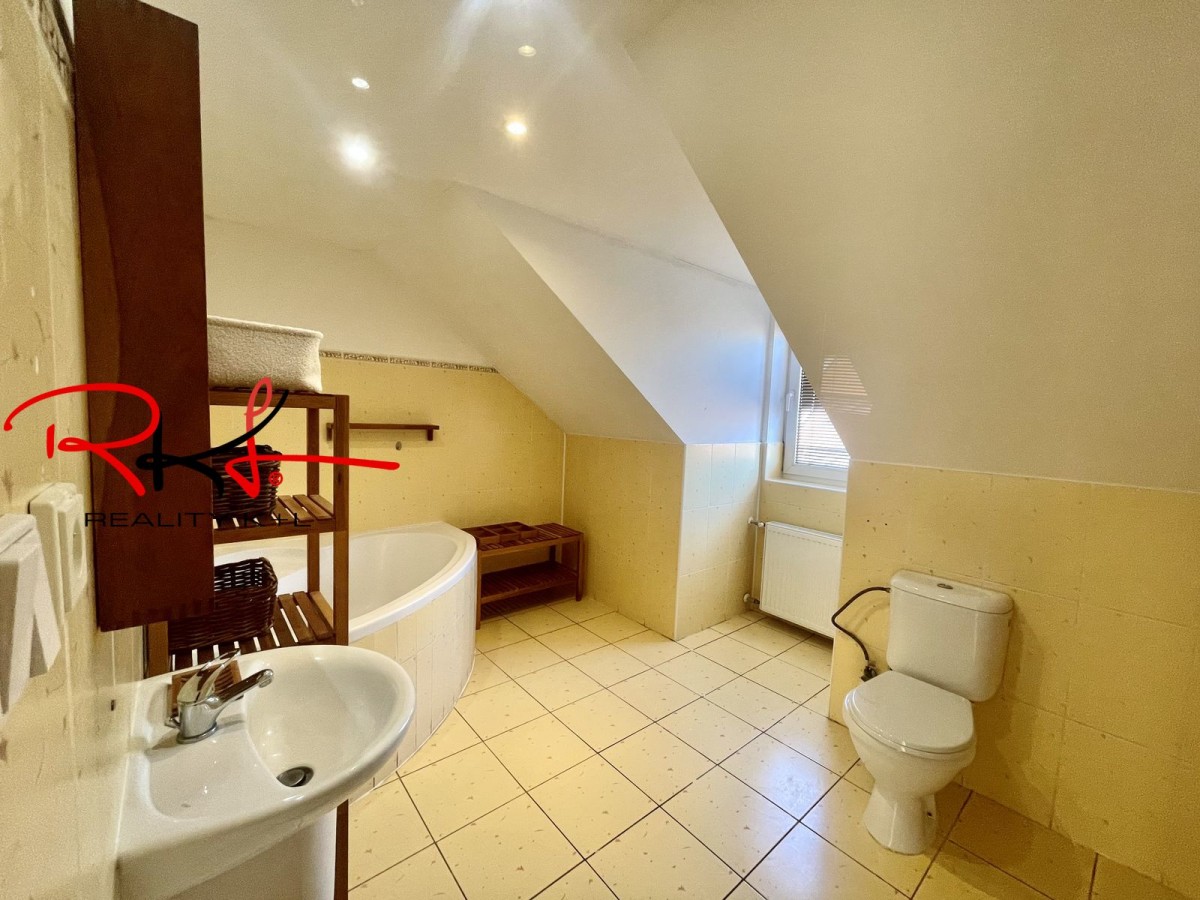 Patro 1: Hlavní ložnice, dětský pokoj, další pokoj, koupelna se vanovým koutem a sociální zařízení WC.