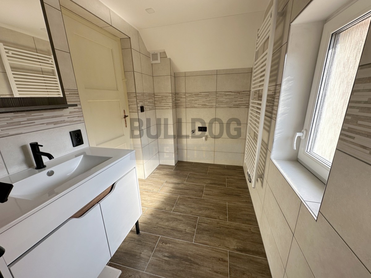 Nabízíme Vám k pronájmu rodinný dům, jednotku o dispozici 3+1. K domu je navíc zahrada (záhony) o ploše cca 75 m2, parkovací stání pro jedno auto, sklep a úložné prostor...y v 2. podlaží domu. Rodinný dům prošel kompletní rekonstrukcí, která byla zakončena v roce 2025 s důrazem na úsporný provoz - moderní podlahové vytápění, které je poháněno tepelným čerpadlem, nová plastová okna s protihlukovým izolačním trojsklem, zateplená fasáda, nová střešní krytina a veškeré rozvody (elektro, voda, odpady a slaboproudé jako je internetové připojení a TV anténa). Dům je označen hodnotou energetické náročnosti G z důvodu chybějícího energetického průkazu, který se právě zpracovává. Rodinný dům je vybaveny základním zařízením, t. j. novou kuchyňskou linkou se spotřebiči (myčka, trouba, sklokeramická deska a digestoř). Dispoziční řešení viz. půdorys (koupelna a toaleta jsou oddělené). Vstup na pozemek o velikosti 125 m2 je sdílený pro vstup k oběma částem RD (rodinný dům) (z toho jedna bytová jednotka v zadní části traktu je již pronajata), sdílený pozemek slouží taktéž i pro parking 2 aut (jedno pro každou z jednotek). Vstupy do nemovitostí jsou oddělené a pozemky reálně také. Nicméně vstup přes branku, vrata a parkovací plocha jsou společné (viz. nákres s legendou ve fotogalerii). S ohledem na sdílení pozemku není možné zde chovat psi či volně pobíhající zvěrstvo. K nastěhování od 1. 5. , nyní se dokončuje připojení tepelného čerpadla a navýšení elektrického příkonu. V docházkové vzdáleností jsou bohaté nákupní možnosti: BILLA, LIDL, PENNY a DATART, v blízkém okolí jsou také k dispozici mateřské, základní školy, střední školy, zdravotnická zařízení, restaurace a sportovní zařízení. Se svými ratolestmi můžete vyrazit na procházku do nedalekého parku Na Podolí a cestou zpět se stavit svému partnerovi pro čerstvé řezané do minipivovaru Němý Medvěd. Dopravní dostupnost je rovněž výborná. Mělník nabízí pravidelné autobusové a vlakové spojení do Prahy. Cesta do hlavního města trvá přibližně 30 až 45 minut. Navíc je Mělník dobře napojen na hlavní silniční tahy, což umožňuje snadný a rychlý přístup do Prahy i dalších měst. Tato lokalita tak kombinuje klidné prostředí menšího města s výhodami rychlé dostupnosti metropole. Autobusové spojení: Linka 349: Tato rychlíková linka jezdí ve všední dny a spojuje Mělník s Prahou, Linka 369: Pravidelné spoje každých 30 minut ze Štětí přes Mělník do Prahy, Linka 400: Spojuje Mělník s Prahou (metro Střížkov), Linka 410: Trasa vede ze Stráže pod Ralskem přes Mělník do Prahy. Vlakové spojení: Linka S3: Spojuje Mělník s Prahou, přičemž vlaky jezdí každé dvě hodiny, ve špičce každou hodinu na Masarykovo nádraží a Linka S32: Další regionální spojení mezi Mělníkem a Lysou nad Labem.