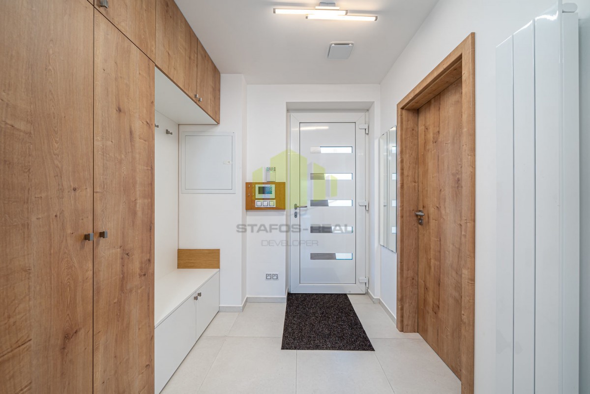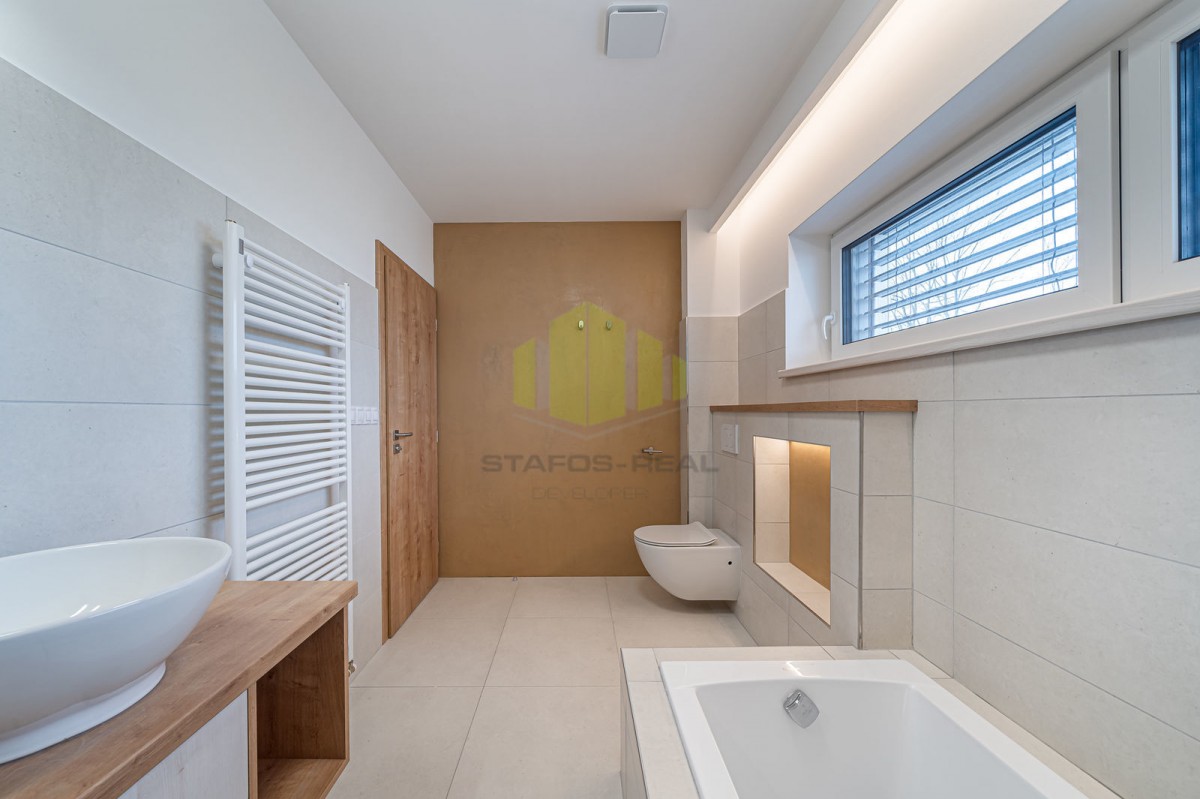 Komfortní bydlení umocňuje inteligentní domácnost řízená chytrými aplikacemi, umožňující vzdálené ovládání zabezpečovacího systému, vytápění, chlazení, bran a venkovních hliníkových žaluzií. Kvalitní izolace z minerální vaty a foukané pěny v kombinaci s trojskly v oknech a HS portálech zajistí optimální teplotní pohodu po celý rok. Navíc, stropní teplovodní systém slouží k vytápění i chlazení, zatímco rekuperační systém garantuje čerstvý vzduch v každém koutu domu.