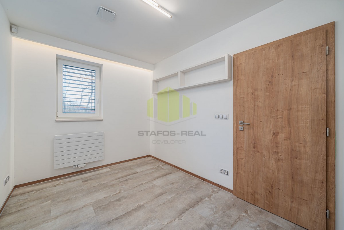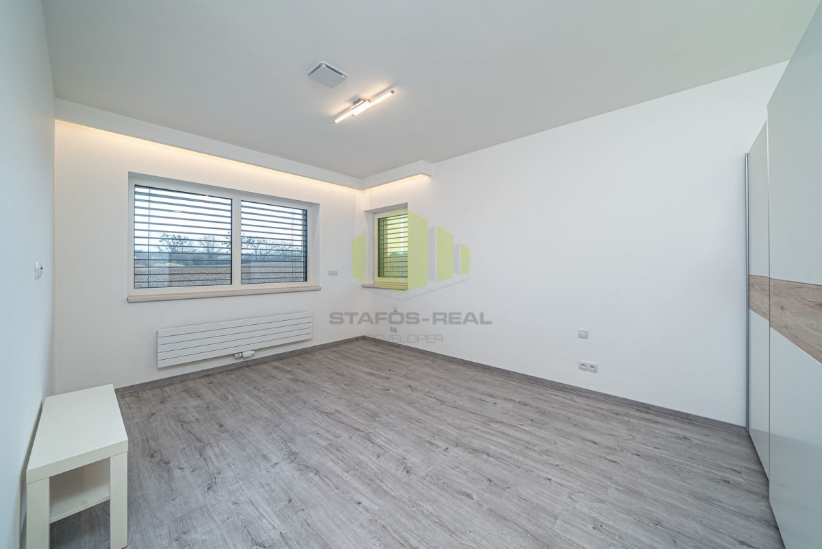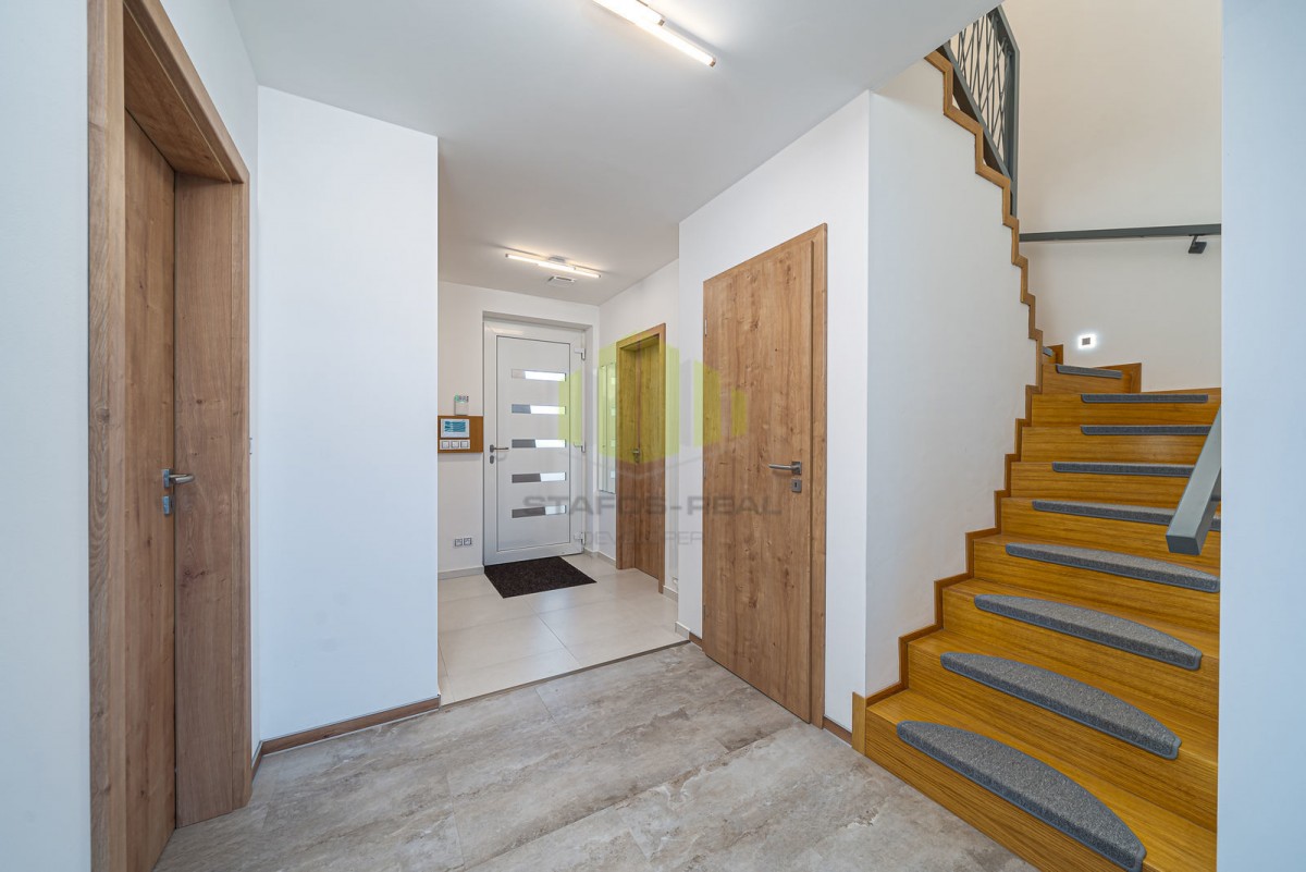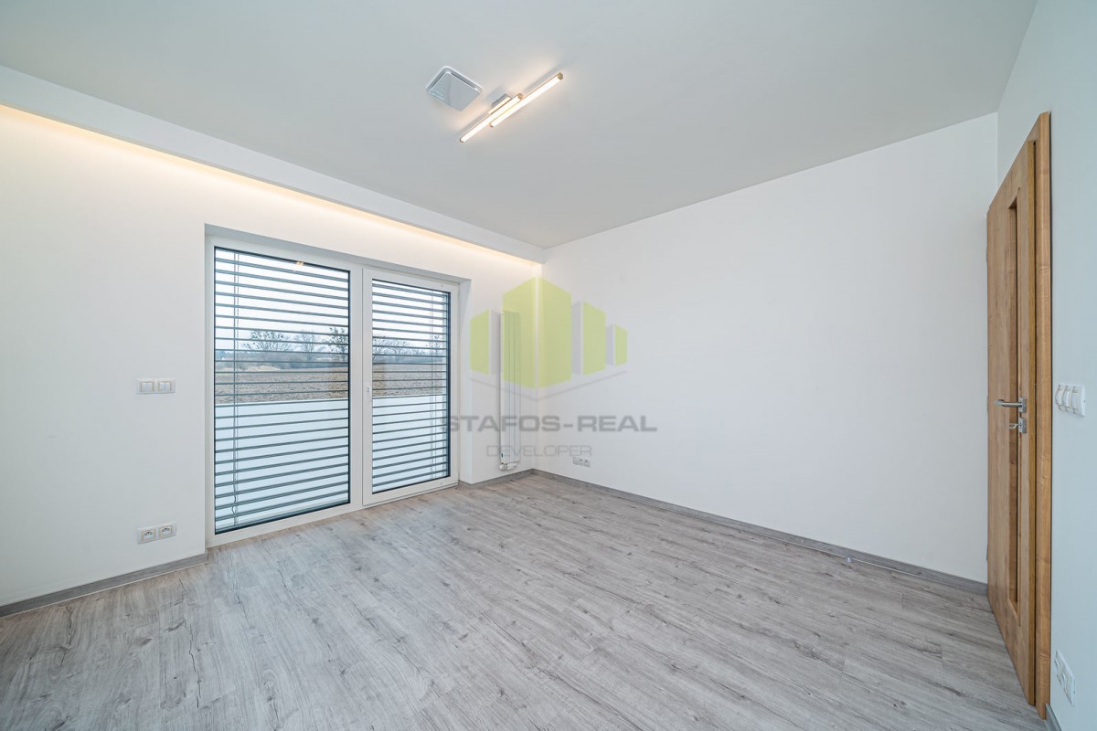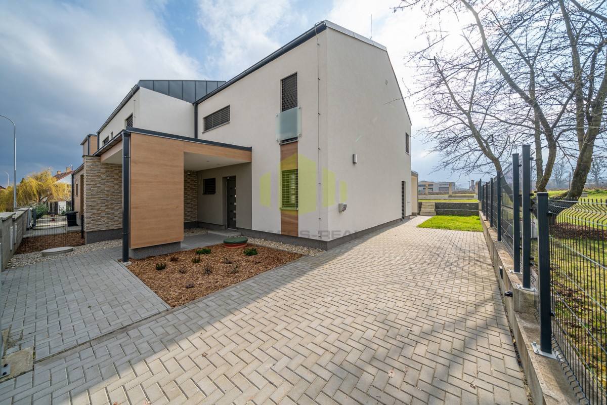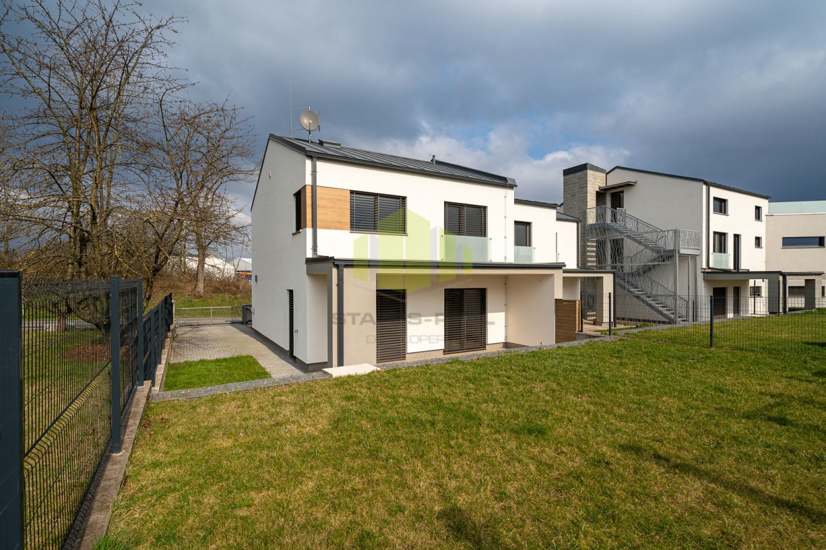 Pro ty, kteří hledají bydlení na úrovni a touží po moderním komfortu 21. století, představujeme jedinečnou možnost pronájmu dvoupodlažní pasivní novostavby rodinného domu, situovaného na malebném okraji Slavonína na ulici... Zolova. Tento prostorný dům o rozloze 138m² s dispozicí 5+kk je jako stvořený pro pohodlné bydlení až šestičlenné rodiny, díky promyšlenému uspořádání prostor, které zajišťuje soukromí i společenský život. Přízemí nabízí multifunkční ložnici s možností využití jako pracovna, která sousedí s obývacím pokojem, zatímco patro skrývá tři ložnice a luxusně vybavenou koupelnu s vanou, závěsným sociální zařízení WC a dvěma umyvadly. V přízemí najdeme dále menší koupelnu s umyvadlem, sprchovým koutem, závěsným sociální zařízení WC a úložnými prostory. Pod schody je umístěna komora pro další uložení věcí. Vstupní hala s obývacím pokojem a schodištěm tvoří jeden otevřený prostor, dodávající domu vzdušnost. Obývací pokoj je rozdělen na relaxační část a kuchyň s U - linkou a jídelním stolem. Z obývacího pokoje se lze dostat přímo do oplocené zahrady, což umožňují posuvné dveře i samostatný vchod z kuchyně. Zahrada nabízí ideální místo pro relaxaci a bezpečnou hru dětí díky oplocení.