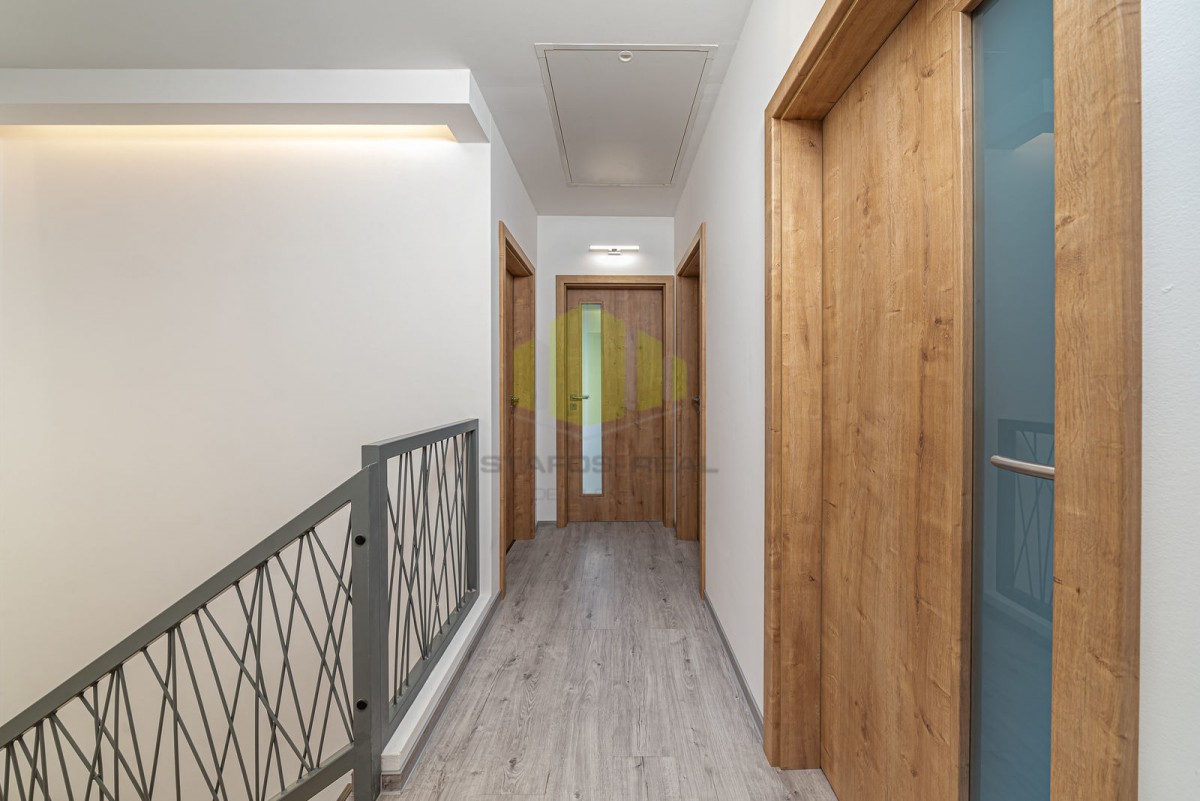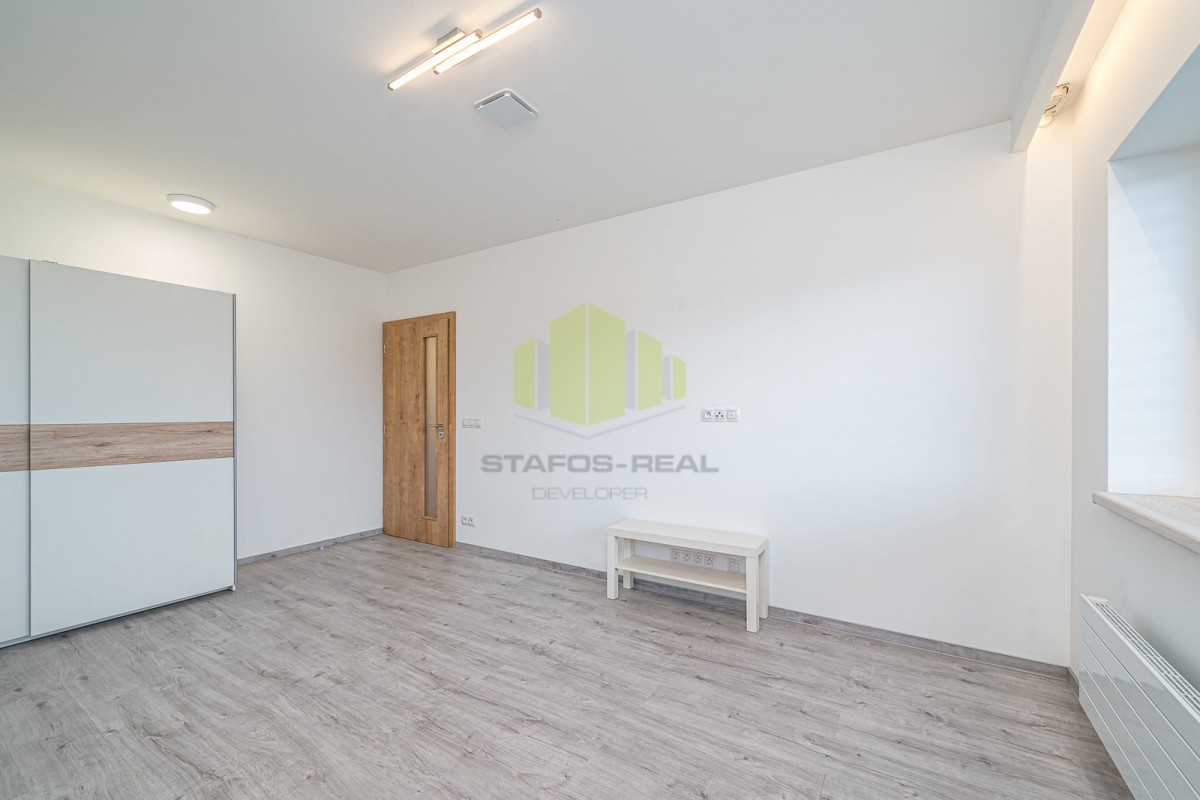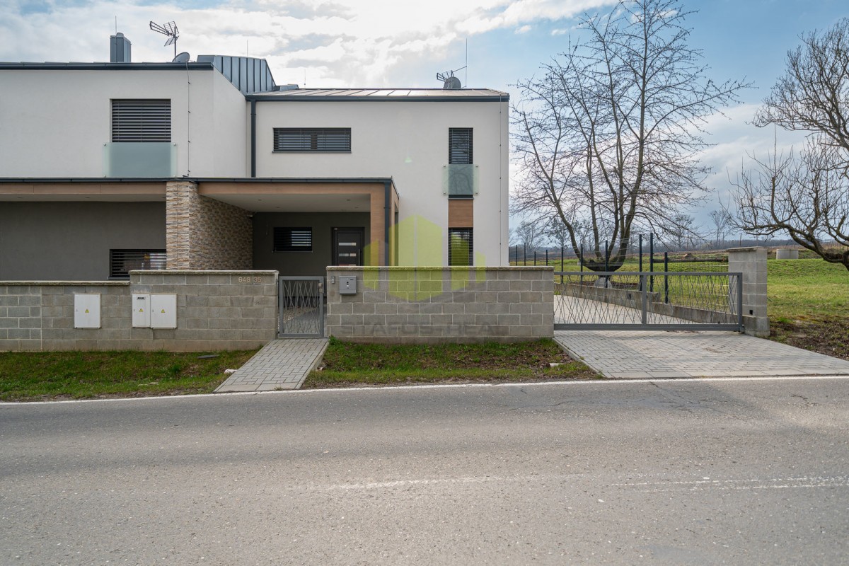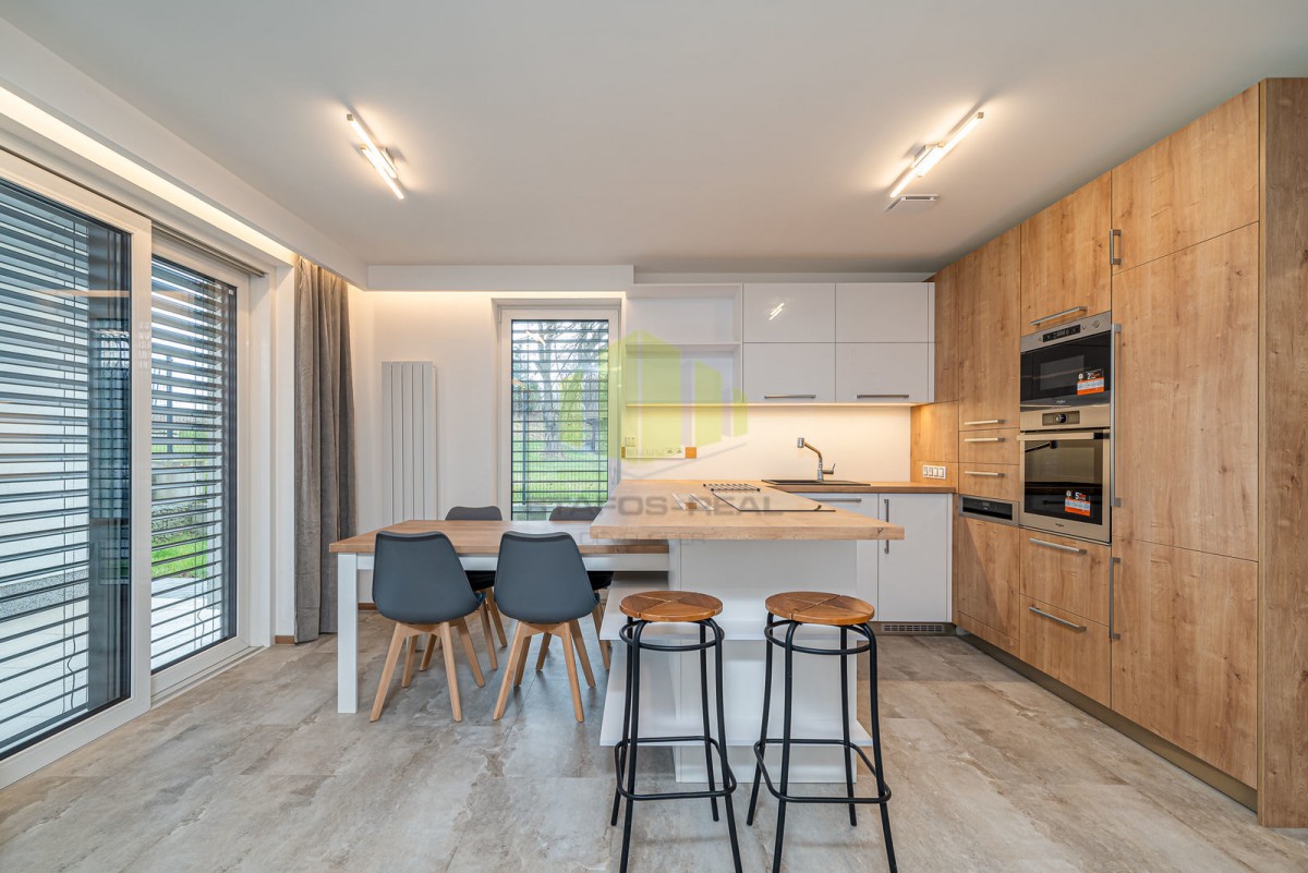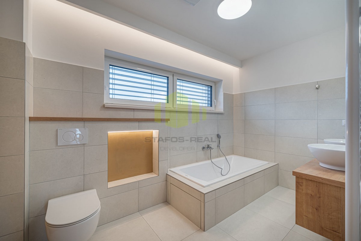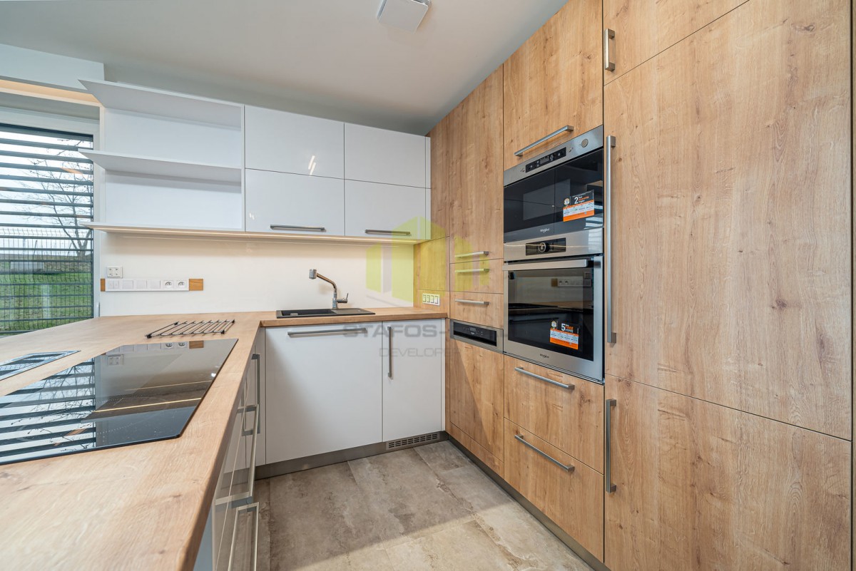 Pro ty, kteří hledají bydlení na úrovni a touží po moderním komfortu 21. století, představujeme jedinečnou možnost pronájmu dvoupodlažní pasivní novostavby rodinného domu, situovaného na malebném okraji Slavonína na ulici... Zolova. Tento prostorný dům o rozloze 138m² s dispozicí 5+kk je jako stvořený pro pohodlné bydlení až šestičlenné rodiny, díky promyšlenému uspořádání prostor, které zajišťuje soukromí i společenský život. Přízemí nabízí multifunkční ložnici s možností využití jako pracovna, která sousedí s obývacím pokojem, zatímco patro skrývá tři ložnice a luxusně vybavenou koupelnu s vanou, závěsným sociální zařízení WC a dvěma umyvadly. V přízemí najdeme dále menší koupelnu s umyvadlem, sprchovým koutem, závěsným sociální zařízení WC a úložnými prostory. Pod schody je umístěna komora pro další uložení věcí. Vstupní hala s obývacím pokojem a schodištěm tvoří jeden otevřený prostor, dodávající domu vzdušnost. Obývací pokoj je rozdělen na relaxační část a kuchyň s U - linkou a jídelním stolem. Z obývacího pokoje se lze dostat přímo do oplocené zahrady, což umožňují posuvné dveře i samostatný vchod z kuchyně. Zahrada nabízí ideální místo pro relaxaci a bezpečnou hru dětí díky oplocení.