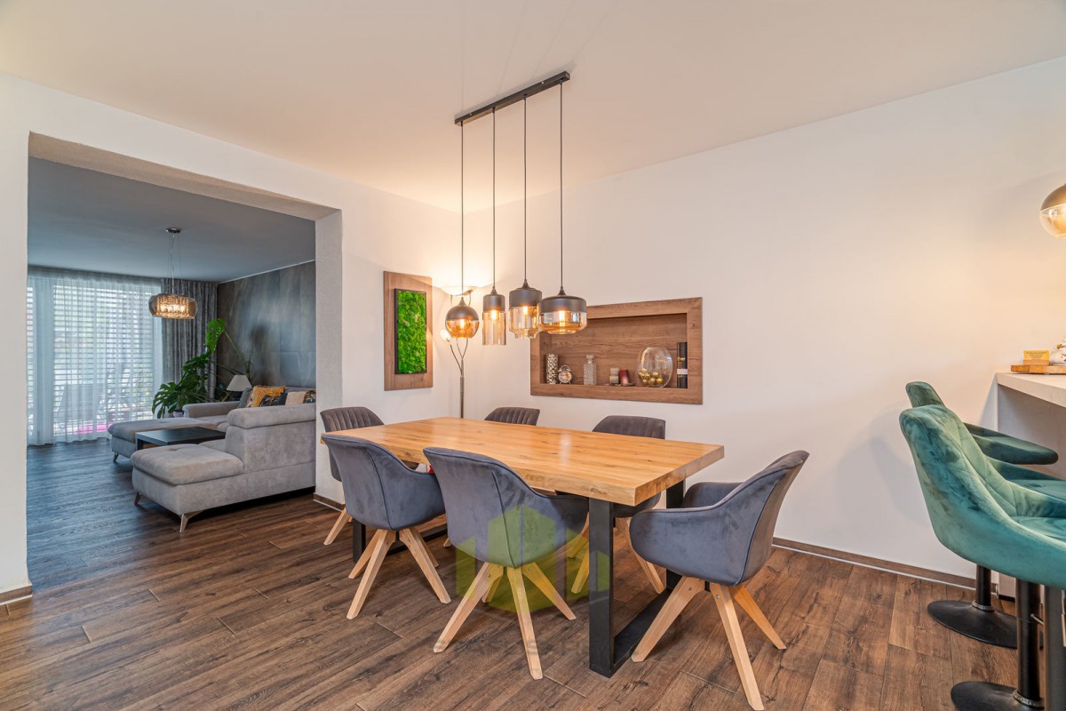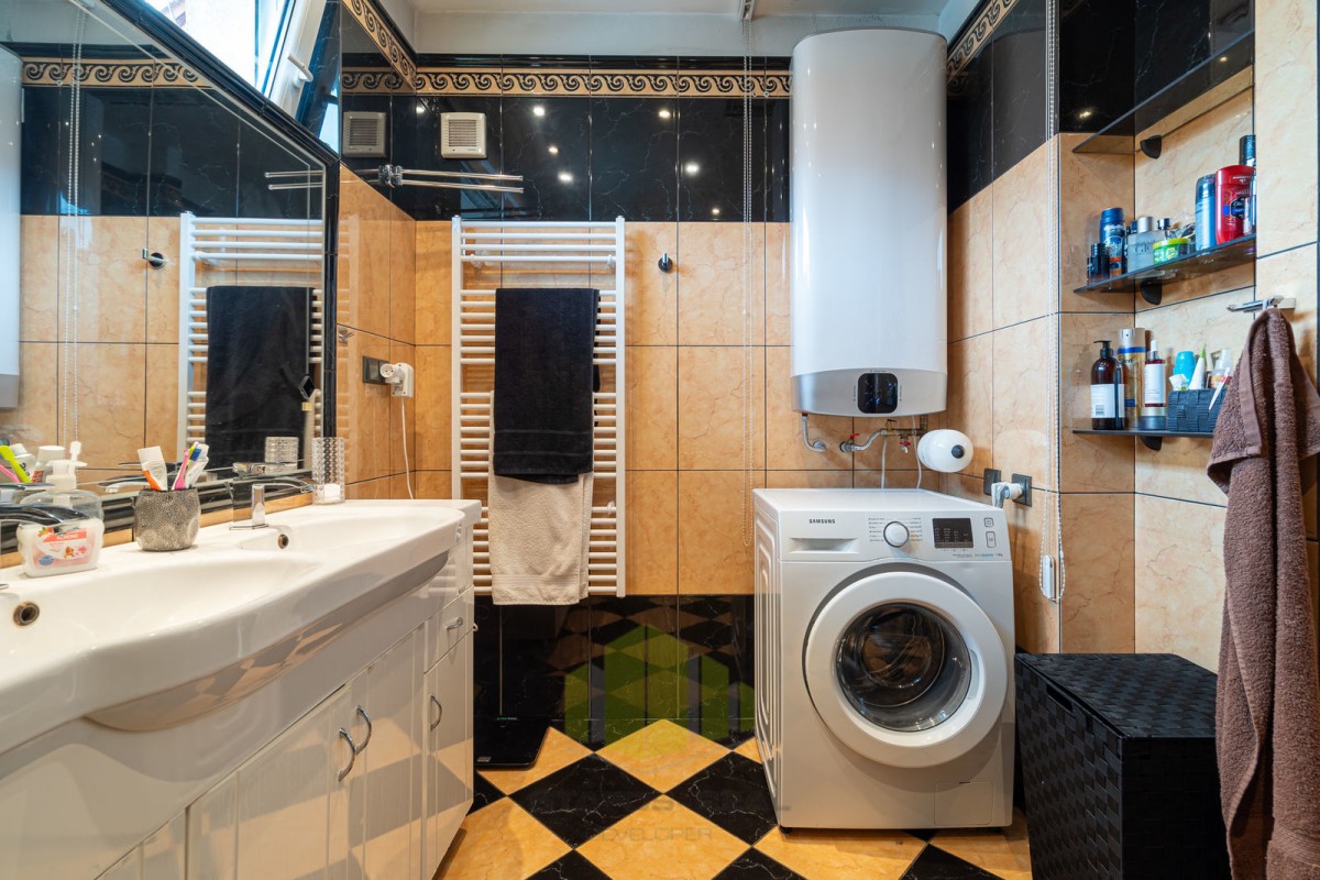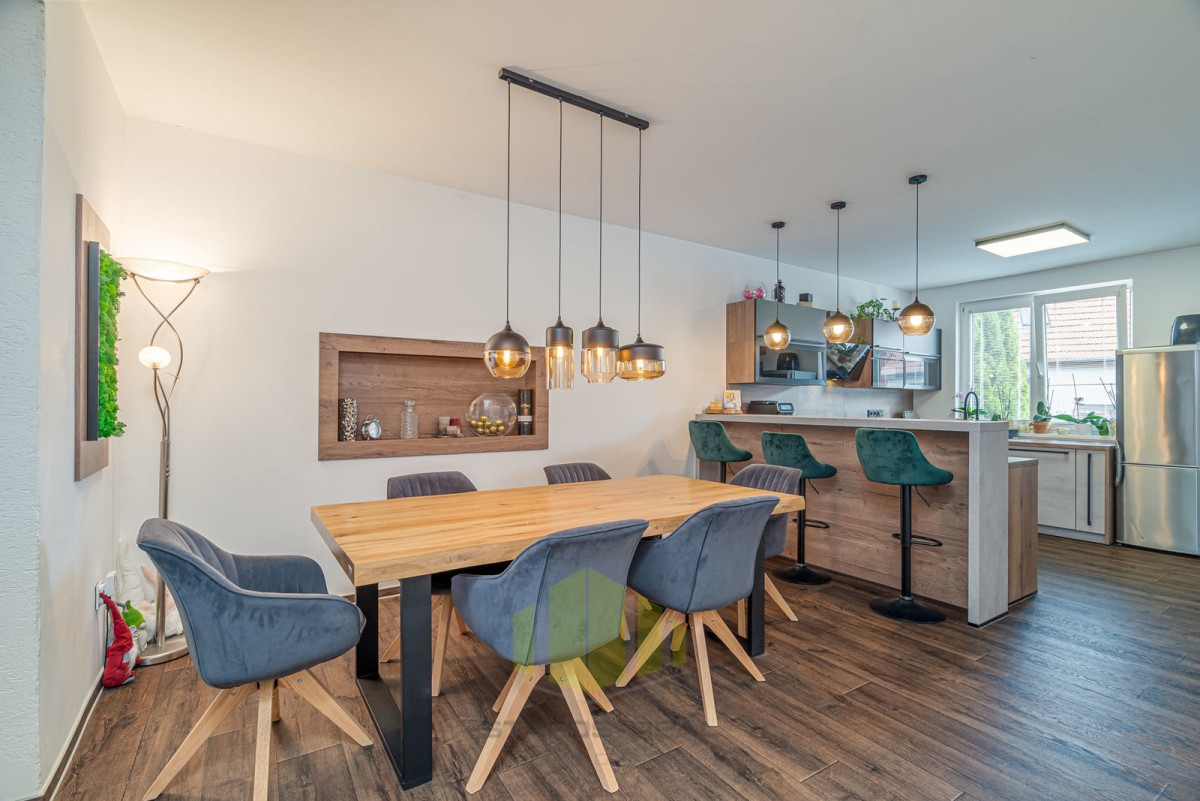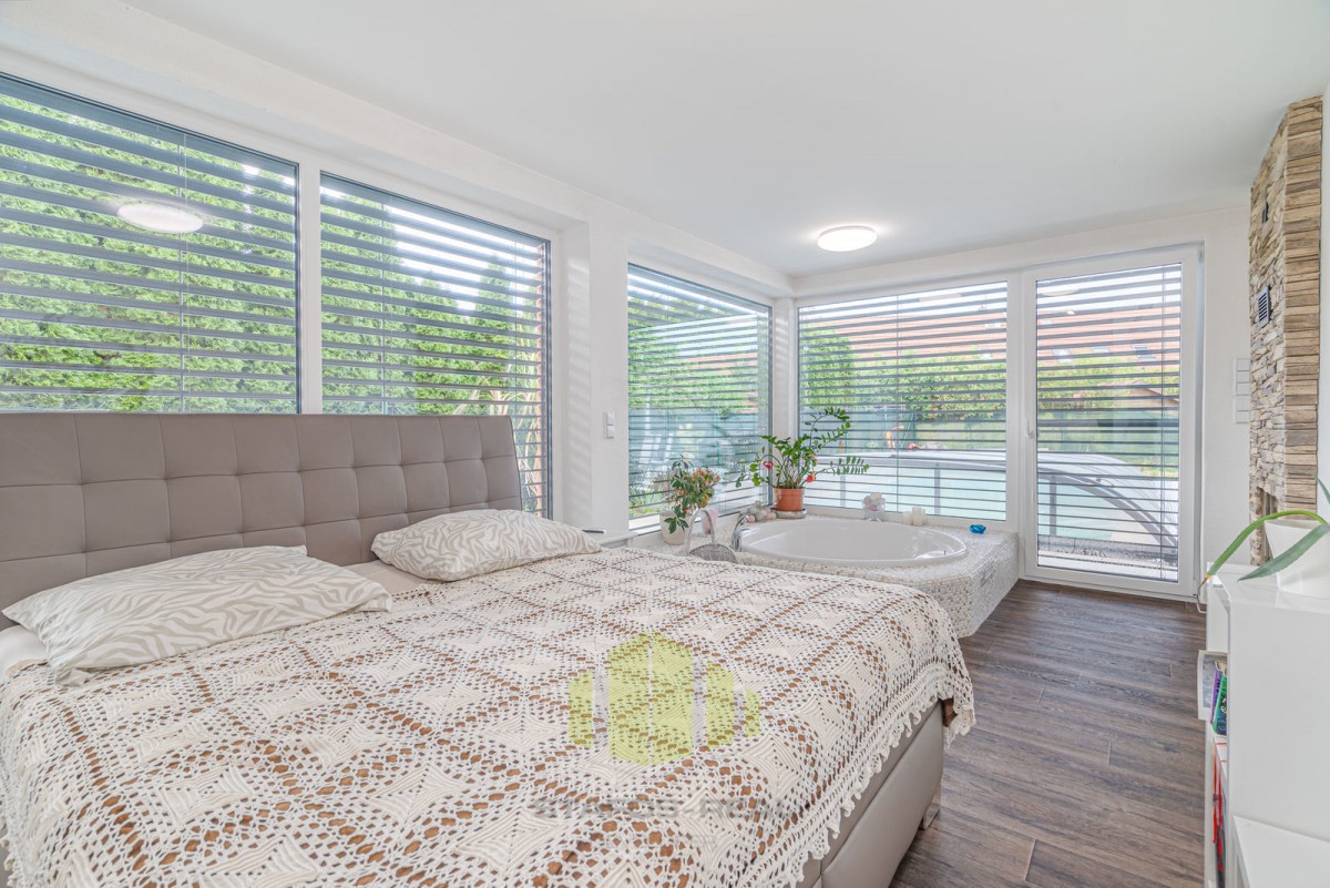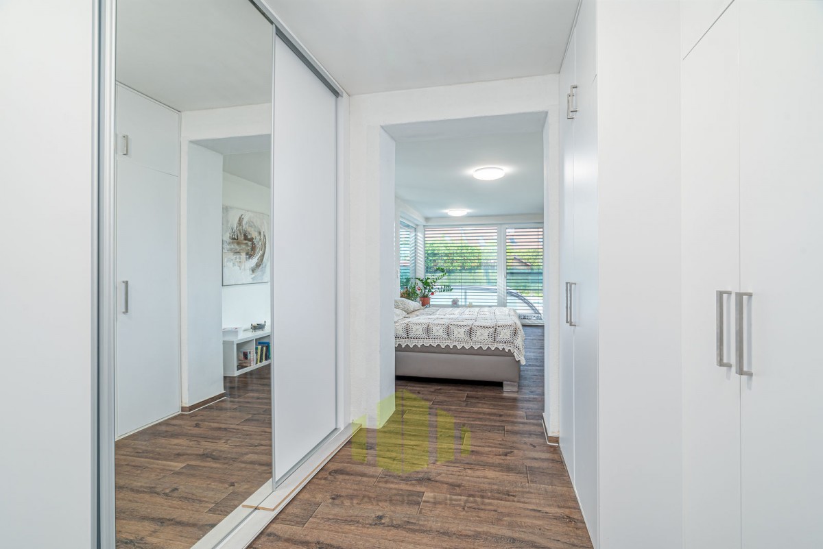 Vila se pyšní užitnou plochou 168 m2 a disponuje příjemným layoutem. Přízemí je tvořeno vstupní halou, vybavenou kuchyní, jídelnou, útulným obývacím pokojem s krbem, koupelnou, toaletou a ložnicí s vanou. V prvním patře najdete další dvě ložnice, z nichž jedna disponuje vířivou rohovou vanou a toaletou.