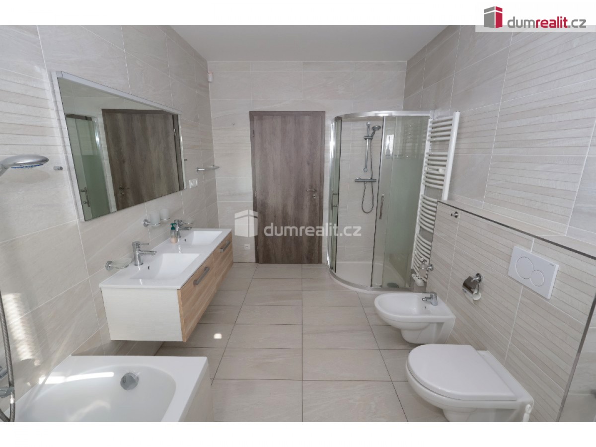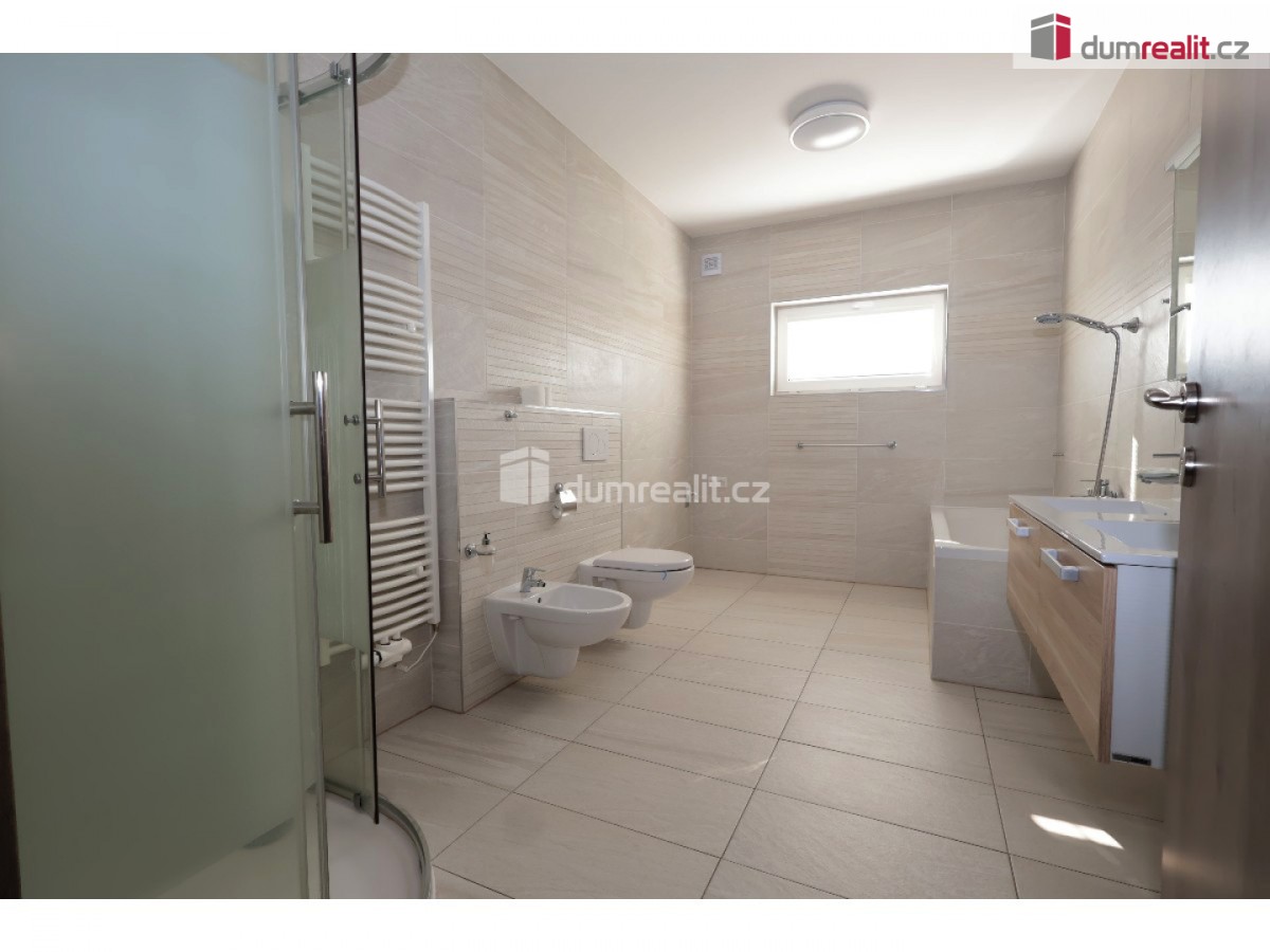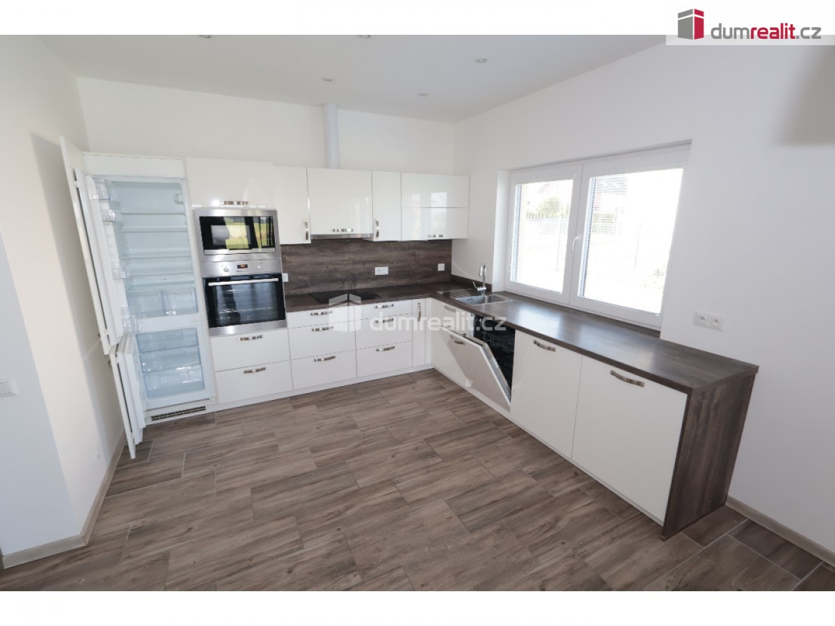 záloha na vodu 1500 Kč, elektroměr a plynoměr se hlásí na nájemce. Dumrealit. cz Vám nabízí exkluzivně pronájem nízkoenergetické, bezbariérové novostavby domu (2018 – top stav) s dispozicí ... kout">4+kk, 152, 40 m² + 8 m² krytá terasa, v obci Sibřina, nedaleko městyse Říčany, 3 km od Prahy. Dům je volný od listipadu, prohlídky jsou již monžné, aktuálně se maluje a připravuje pro nového nájemce. Plocha pozemku je 1143 m², zastavěná plocha je 200 m², zahrada má 943 m². Dispozici domu 4+kk (152, 40 m²) s garáží (20 m²) tvoří prostorný obývací pokoj (40, 9 m²) s možností instalace krbových kamen, prakticky spojený s kuchyňským koutem, který je vybavený luxusní zakázkovou kuchyňskou linkou se spotřebiči (myčka 60, indukční deska, digestoř a vestavěná el. trouba a vestavěná mikrovlnka). Kuchyňský kout má praktickou komoru/špajz (1, 93 m²). Z obývacího pokoje je vstup přes francouzské dveře na zastřešenou terasu (8 m²) a na zahradu (943 m²). Další místnost domu 4+kk (152, 4 m²) tvoří: ložnice (15, 76 m²), dětský pokoj (14, 48 m²) a pokoj (13, 88 m²), centrální koupelna (9, 84 m²) s vanou, umyvadlem, toaletou, bidetem, sprchovým koutem a oknem. Dále jsou v domě: komora / technická místnost (4, 43 m²), toaleta (2, 40 m²), velká interiérová chodba (14, 12 m²), zádveří (6, 46 m²), samostatný sklad (8, 20 m²), který má přístup ze zahrady a je zde umístěn plynový kotel, a velká garáž pro 1 auto (20 m²) se vstupem do domu. V celém domě je podlahové/teplovodní vytápění pomocí plynového kotle a klimatizace. Konstrukce domu je z materiálu Ytong. Na podlaze ve 2/3 domu je praktická dlažba, ostatní pak plovoucí podlahy. Vjezd do garáže je ovládán elektronicky. Tento dům je volný od listopadu, je v osobním vlastnictví, elektroměr a plynoměr se hlásí na nájemce. Zvíře se řeší individuálně. Na zahradě je 4 m3 nádoba na dešťovou vodu – zalévání. Internet pomocí místní WIFI, dům má vlastní alarm. Majitel garantuje stabilní dlouhodobý pronájem, aktuální nájemce se stěhuje na vlastní žádost po 3 letech. Dům pronajímáme od roku 2018. Velmi doporučuji všem, kteří hledají bungalov s velkou zahradou a garáží. Ev. číslo: 652493. Energetický štítek: B (167 kWh/m2/rok).