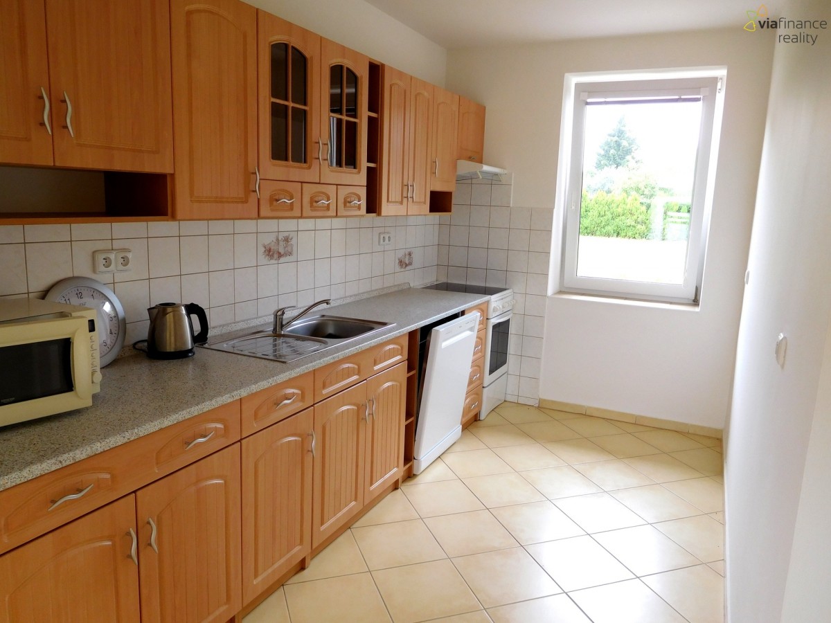 Nabízím Vám pronájem patrového zděného rodinného domu, který se nachází v klidné části obce Svítkov, na konci slepé ulice. Podlahová plocha domu je 140 m2, jeho dispozice ...>5+kk. V přízemí domu je prostorný obývací pokoj s kuchyňským a jídelním koutem, dvě ložnice, koupelna a toaleta, v patře potom další koupelna s rohovou vanou a sprchovým koutem, velký a malý pokoj, toaleta. V celém domě je podlahové topení, vytápění zajišťuje plynový kotel. Součástí domu je garáž. Dům se nachází na oploceném pozemku společném pro další 4 rodinné domy, které se také pronajímají. Jde o klidné rodinné bydlení, bez domácích mazlíčků. Prohlídky budou možné od 20. 2.