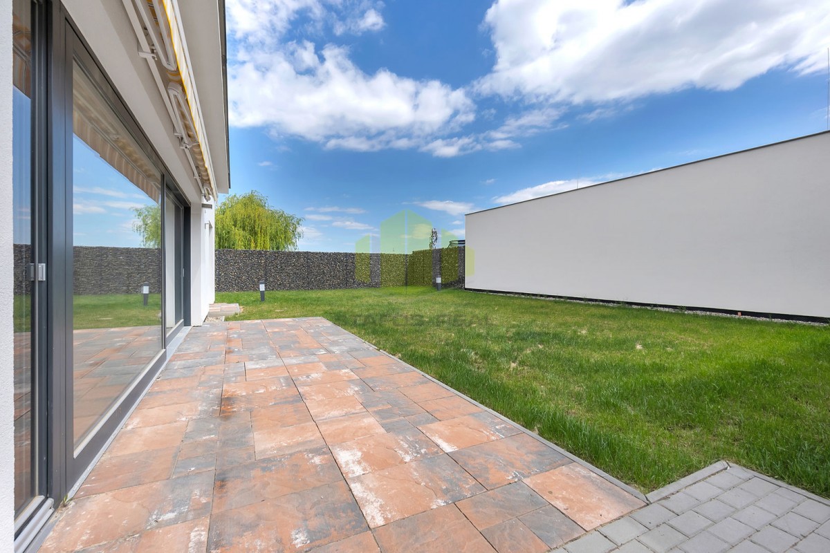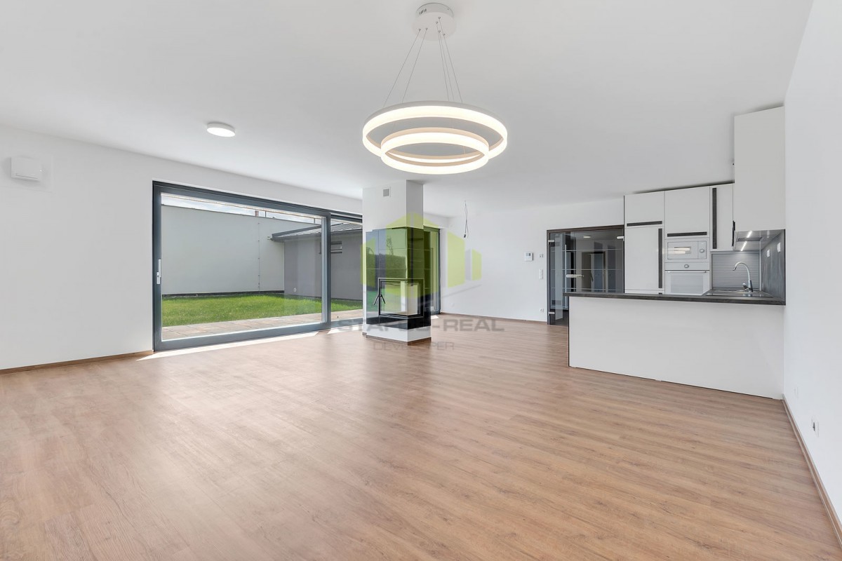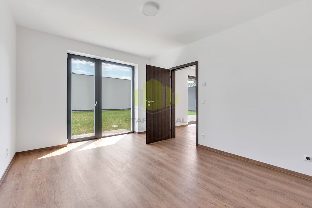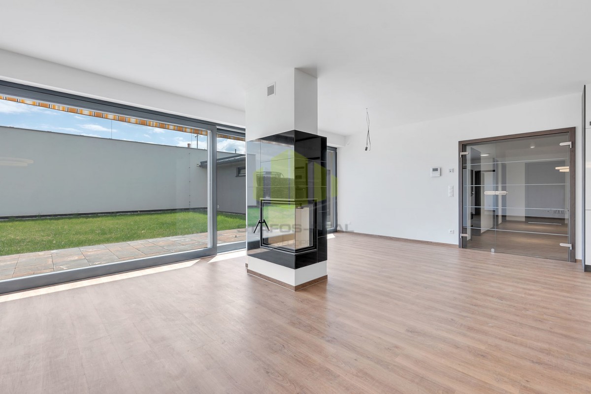 Pro moderní rodinu s vysokými nároky na komfort bydlení 21. století, nabízíme exklusivně pronájem atriového nízkopodlažního domu v nově vzniklé výstavbě na okraji Nedvězí u Olomouce. Samotný dům s plochou 208m2 ...o dispozici 4+kk včetně dvojgaráže nabízí zázemí až pro 5 - ti člennou rodinu v dispozičně precizně vymyšleném rozmístění jednotlivých pokojů v rámci domu tak, že dvě ložnice, určené primárně dětem, jsou od manželské ložnice se samostatnou šatnou i vstupem na zahradu, odděleny centrální chodbou a velkoryse prostorově řešeným obývacím pokojem s kuchyňským koutem a krbem, jako dominantou celého prostoru. Z chodby je pak dále přístup do koupelny, sociální zařízení WC, samostatné šatny, technické místnosti a ke vstupu do domu. Ve všech pokojích tv+sat+dat zásuvky. Z obývacího pokoje je přímý vstup do atriové zahrady jak HS posuvnými francouzskými dveřmi, tak samostatnými sousedícími dveřmi z kuchyňské části, přičemž zahrada díky svému uspořádání a poloze skýtá absolutní soukromí pro rodinu a bezpečné hraní dětí. Část zahrady při vstupu do obývacího pokoje je vydlážděná, o ochranu před dotěrným sluncem nebo deštěm se stará elektronicky ovládaná markýza. V domě dále naleznete dostatečný počet vestavěných skříní jak v pokojích, tak např. ve vstupní hale, celý dům je řízen inteligentním řízením spotřeby energie, výtápění pomocí el. podlahového topení. Celý systém topení lze ovládat chytrým telefonem. Za zmínku dále stojí venkovní polohovací hliníkové žaluzie, oplocení zahrady gabionovým plotem, retenční nádrž pro zalévání, atd. Dvojgaráž o ploše 47m2 počítá s parkováním pro dvě auta a místem pro uložení zahradní techniky a jiného nářadí. V blízkém okolí kompletní občanská vybavenost, dojezd do Olomouce do 3min. Vratná kauce ve výši dvou měsíčních nájmů, odměna RK ve výši jednoho měsíčního nájmu. Předpokládané náklady na bydlení do 5. 000, - Kč. Více info a osobní prohlídky po tel. domluvě s makléřem. Volné po domluvě od 1. 3. 2024.