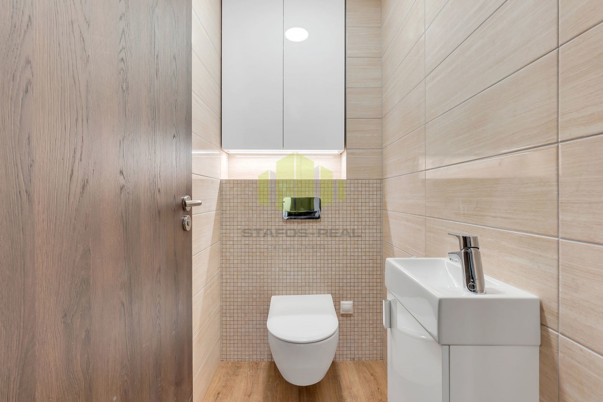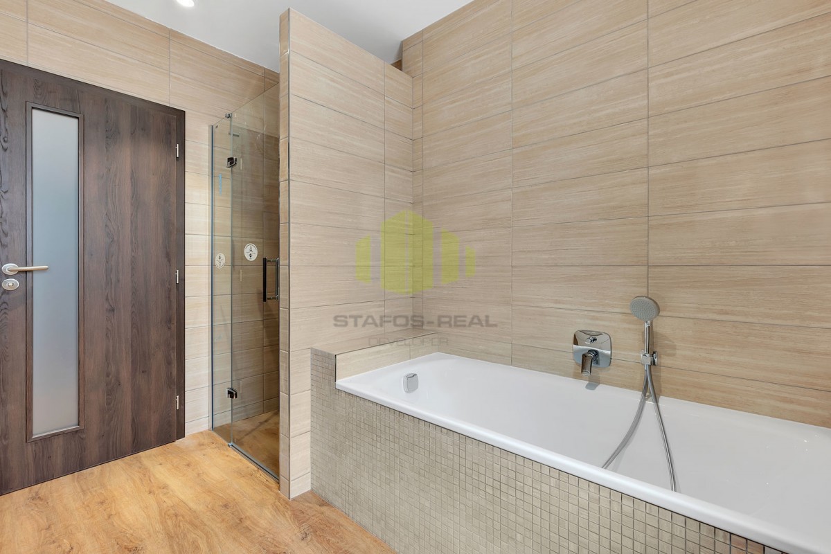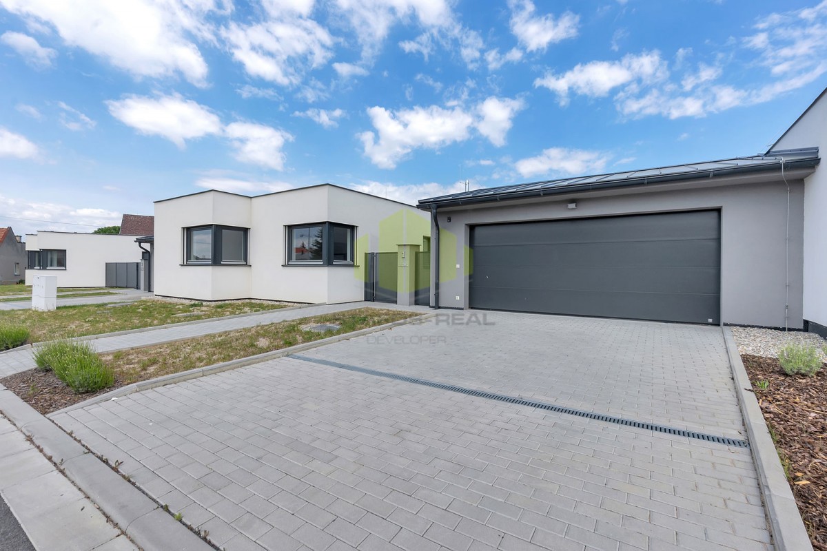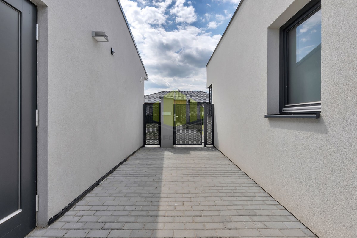 Pro moderní rodinu s vysokými nároky na komfort bydlení 21. století, nabízíme exklusivně pronájem atriového nízkopodlažního domu v nově vzniklé výstavbě na okraji Nedvězí u Olomouce. Samotný dům s plochou 208m2 ...o dispozici 4+kk včetně dvojgaráže nabízí zázemí až pro 5 - ti člennou rodinu v dispozičně precizně vymyšleném rozmístění jednotlivých pokojů v rámci domu tak, že dvě ložnice, určené primárně dětem, jsou od manželské ložnice se samostatnou šatnou i vstupem na zahradu, odděleny centrální chodbou a velkoryse prostorově řešeným obývacím pokojem s kuchyňským koutem a krbem, jako dominantou celého prostoru. Z chodby je pak dále přístup do koupelny, sociální zařízení WC, samostatné šatny, technické místnosti a ke vstupu do domu. Ve všech pokojích tv+sat+dat zásuvky. Z obývacího pokoje je přímý vstup do atriové zahrady jak HS posuvnými francouzskými dveřmi, tak samostatnými sousedícími dveřmi z kuchyňské části, přičemž zahrada díky svému uspořádání a poloze skýtá absolutní soukromí pro rodinu a bezpečné hraní dětí. Část zahrady při vstupu do obývacího pokoje je vydlážděná, o ochranu před dotěrným sluncem nebo deštěm se stará elektronicky ovládaná markýza. V domě dále naleznete dostatečný počet vestavěných skříní jak v pokojích, tak např. ve vstupní hale, celý dům je řízen inteligentním řízením spotřeby energie, výtápění pomocí el. podlahového topení. Celý systém topení lze ovládat chytrým telefonem. Za zmínku dále stojí venkovní polohovací hliníkové žaluzie, oplocení zahrady gabionovým plotem, retenční nádrž pro zalévání, atd. Dvojgaráž o ploše 47m2 počítá s parkováním pro dvě auta a místem pro uložení zahradní techniky a jiného nářadí. V blízkém okolí kompletní občanská vybavenost, dojezd do Olomouce do 3min. Vratná kauce ve výši dvou měsíčních nájmů, odměna RK ve výši jednoho měsíčního nájmu. Předpokládané náklady na bydlení do 5. 000, - Kč. Více info a osobní prohlídky po tel. domluvě s makléřem. Volné po domluvě od 1. 3. 2024.