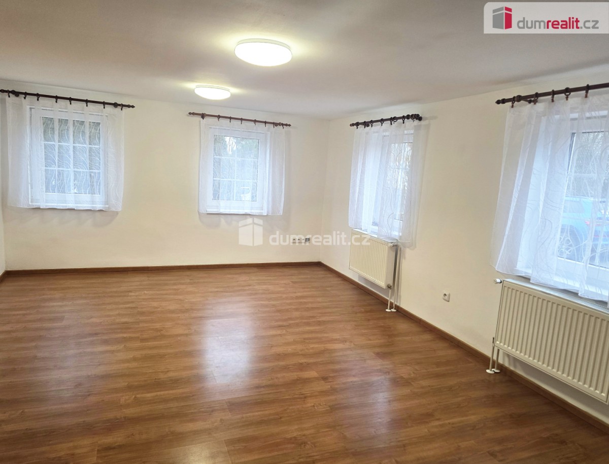 pronájem rodinného domu 4+1 v obci Horní Bousov. Dispozice domu v přízemí: průchozí komunikační chodba se schodištěm do podkroví a ven na zadní terasu. Z chodby se pak dostaneme do ...koupelny (se sprchovým koutem, umyvadlem a sociální zařízení WC), dětský pokoj, ložnice, jídelna která je opticky propojená s kuchyní. Kuchyňská linka má vestavěnou troubou, varnou deskou a digestoř. V jídelně jsou instalována nová krbová kamna s rozvodem do radiátoru a jako druhá varianta je v domě nainstalovaný elektrický kotel.