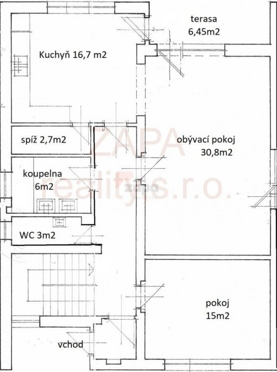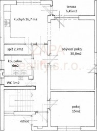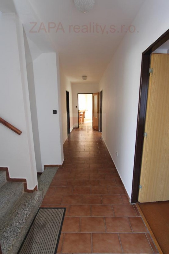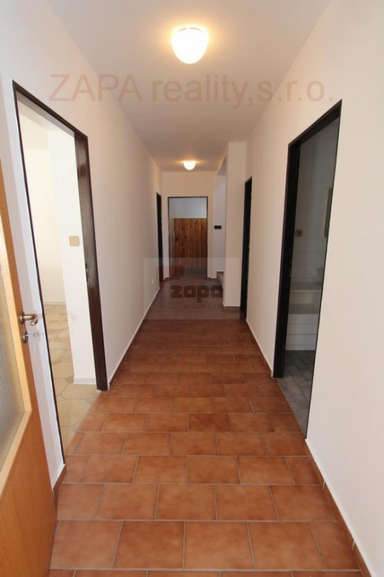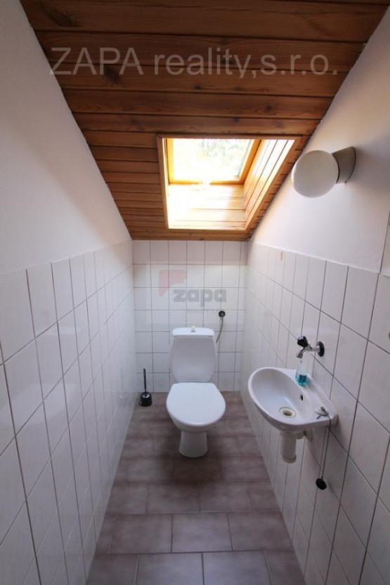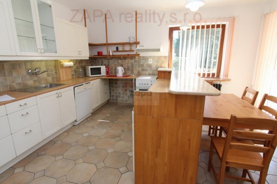 Exkluzivně nabízíme k pronájmu samostatně stojící podsklepený rodinný dům o velikost 5+1+2 krát balkon + terasa se zahradou v Říčanech u Prahy, ul. Akátová, zhruba 20 km jihovýchod...ně od centra Prahy. Dům byl kolaudován v roce 1993 a má celkovou obytnou plochu 180 m2 + terasa (6, 45m2)+balkon 1 (4, 5m2)+balkon2 (10, 87m2)+garáž (18, 27m2). Dispozice: v přízemí je obývací pokoj 30, 8m2 s přímým vstupem na zastřešenou terasu a zahradu o velikosti 809 m2, kuchyň (20m2) se spíží (2, 7m2) volně propojená s obývacím pokojem, chodba (9, 84m2), koupelna s vanou (6m2) a samostatné sociální zařízení WC s umyvadlem (3m2). Všechny místnosti v přízemí jsou se samostatným vchodem. V prvním patře jsou 3 samostatné neprůchozí místnosti ( 27m2 + 23m2 + 25m2), samostatná koupelna s vanou( 5, 1m2) a samostatné sociální zařízení WC (2, 84m2) a chodba (7, 9m2) a 2 balkony. Dům je celý podsklepený, sklepy jsou suché o celkové vel. 86 m2 se vstupem ze zahrady nebo přímo z chodby domu. Dům je nezařízený, z vybavení kuchyňská linka včetně spotřebičů (myčka, elektrický sporák), po dohodě lze ponechat vybavení po bývalém nájemci. Na podlahách je v přízemí dlažba, v podkroví v místnostech koberce (dle dohody možné odstranit) nebo lakovaná dřevotříska, na chodbě, v koupelně a sociální zařízení WC dlažba. Topení etážové - plynové (v přízemí v kuchyni a v obývacím pokoji podlahové vytápění). Dům je vymalovaný, čistý, s jihovýchodní a severozápadní orientací, parkování pro 2 vozidla je možné v garáži nebo před garáží na zastřešeném stání, jinak lze bezproblémově parkovat před dome v ulici. Na zahradě je nefunkční bazén, který momentálně slouží pouze jako nádrž na dešťovou vodu pro zalévání zahrady. Dům se nachází v klidné a tiché části obce, 15 minut chůzí od vlakového nádraží, v pěší dostupnosti je veškerá občanská vybavenost - základní i střední školy, školky, obchody a služby. Dům je ve výborné dostupnosti do Prahy: automobilem a autobusem (cca 10 - 15min na metro trasa C - Háje, trasa A - Strašnická) nebo vlakem (cca 30min na metro trasa C - Hlavní nádraží). Dům je vhodný pro pár nebo rodinu s většími dětmi (s ohledem na bezpečí kvůli nezajištěného bazénu) a je volný okamžitě. Nájemné činí 25. 000, - Kč+poplatky cca 5. 000, - Kč (včetně spotřeby vody, plynu a elektřiny)+ kauce ve výši 1 měsíčního nájmů. V případě zájmu o prohlídku nás neváhejte kontaktovat. Provize je 50% z nájmu bez poplatků.