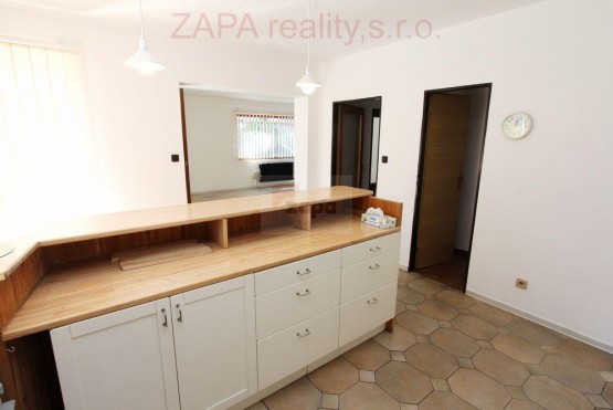 Exkluzivně nabízíme k pronájmu samostatně stojící podsklepený rodinný dům o velikost 5+1+2 krát balkon + terasa se zahradou v Říčanech u Prahy, ul. Akátová, zhruba 20 km jihovýchod...ně od centra Prahy. Dům je třípodlažní, byl kolaudován v roce 1993 a má celkovou obytnou plochu 180 m2 + terasa (6, 45m2)+balkon 1 (4, 5m2)+balkon 2 (10, 87m2)+ garáž (18, 27m2). Dispozice: v přízemí je obývací pokoj 30, 8m2 s přímým vstupem na zastřešenou terasu a zahradu o velikosti 809 m2, kuchyň (20m2) se spíží (2, 7m2) volně propojená s obývacím pokojem, samostatný pokoj 15m2 chodba (9, 84m2), , koupelna s vanou (6m2) a samostatné sociální zařízení WC s umyvadlem (3m2). Všechny místnosti v přízemí jsou se samostatným vchodem. V prvním patře jsou 3 samostatné neprůchozí místnosti ( 27m2 + 23m2 + 25m2), samostatná koupelna s vanou( 5, 1m2) a samostatné sociální zařízení WC (2, 84m2) a chodba (7, 9m2) a 2 balkony. Dům je celý podsklepený, sklepy jsou suché o celkové vel. 86 m2 se vstupem ze zahrady nebo přímo z chodby domu. Dům je nezařízený, z vybavení kuchyňská linka včetně spotřebičů (myčka, elektrický sporák), po dohodě lze ponechat vybavení po bývalém nájemci. Na podlahách je v přízemí dlažba, v podkroví v místnostech koberce (dle dohody možné odstranit) nebo lakovaná dřevotříska, na chodbě, v koupelně a sociální zařízení WC dlažba. Topení etážové - plynové (vlastní plynový kotel), v přízemí v kuchyni a v obývacím pokoji podlahové vytápění. Dům je vymalovaný, čistý, s jihovýchodní a severozápadní orientací, parkování vozidel je možné v garáži (š. 3, 5 krát d. 5, 18m) nebo před garáží na zastřešeném stání, jinak lze bezproblémově parkovat před domem v ulici. Na zahradě je nefunkční bazén, který momentálně slouží pouze jako nádrž na dešťovou vodu pro zalévání zahrady. Dům se nachází v klidné a tiché části obce ve slepé ulici, která volně navazuje na rozlehlý lesopark , 15 minut chůzí od vlakového nádraží, v pěší dostupnosti je veškerá občanská vybavenost - základní i střední školy, školky, obchody a služby. Dům je ve výborné dostupnosti do Prahy: automobilem a autobusem (cca 10 - 15min na metro trasa C - Háje, trasa A - Strašnická) nebo vlakem (cca 30min na metro trasa C - Hlavní nádraží). Dům je vhodný pro pár nebo rodinu s většími dětmi (s ohledem na bezpečí kvůli nezajištěného bazénu), bez psa (chybí oplocení mezi sousedy) a je volný ihned. Nájemné činí 25. 000, - Kč + poplatky cca 6. 000, - Kč/měs. za spotřebu vody, plynu a elektřiny, při podpisu smlouvy je třeba uhradit kauci ve výši 31. 000, - Kč a provizi ve výši 25. 000, - Kč. V případě zájmu o prohlídku nás neváhejte kontaktovat.