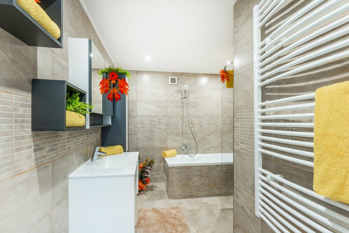 Nemovitost byla důkladně zrekonstruována a splňuje nejvyšší standardy energetické efektivity. Dům je napojen na veřejný vodovod i kanalizaci a využívá moderní technologie, jako je bojler s ohřevem vody přes fotovoltaické panely a ústřední topení prostřednictvím tepelného čerpadla. Celá budova je perfektně zateplená a nachází se v energetické třídě A, což znamená velice nízké náklady na energie. Vaše celkové měsíční náklady na energie včetně elektriky, vody a odpadů činí pro každou jednotku přibližně 3 000 Kč! Energie možno měřit samostatně podružným měřidlem v každém bytě.