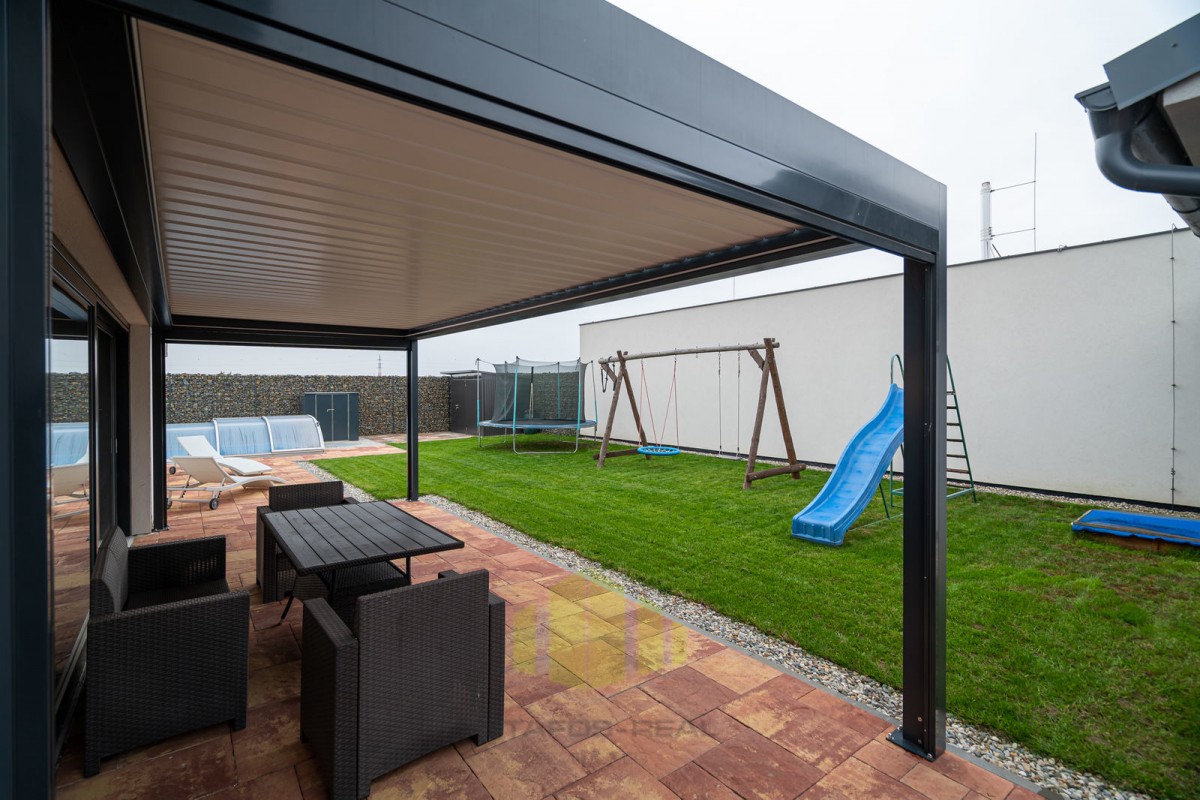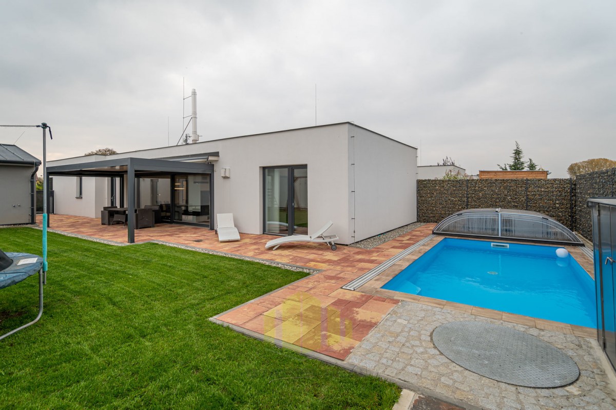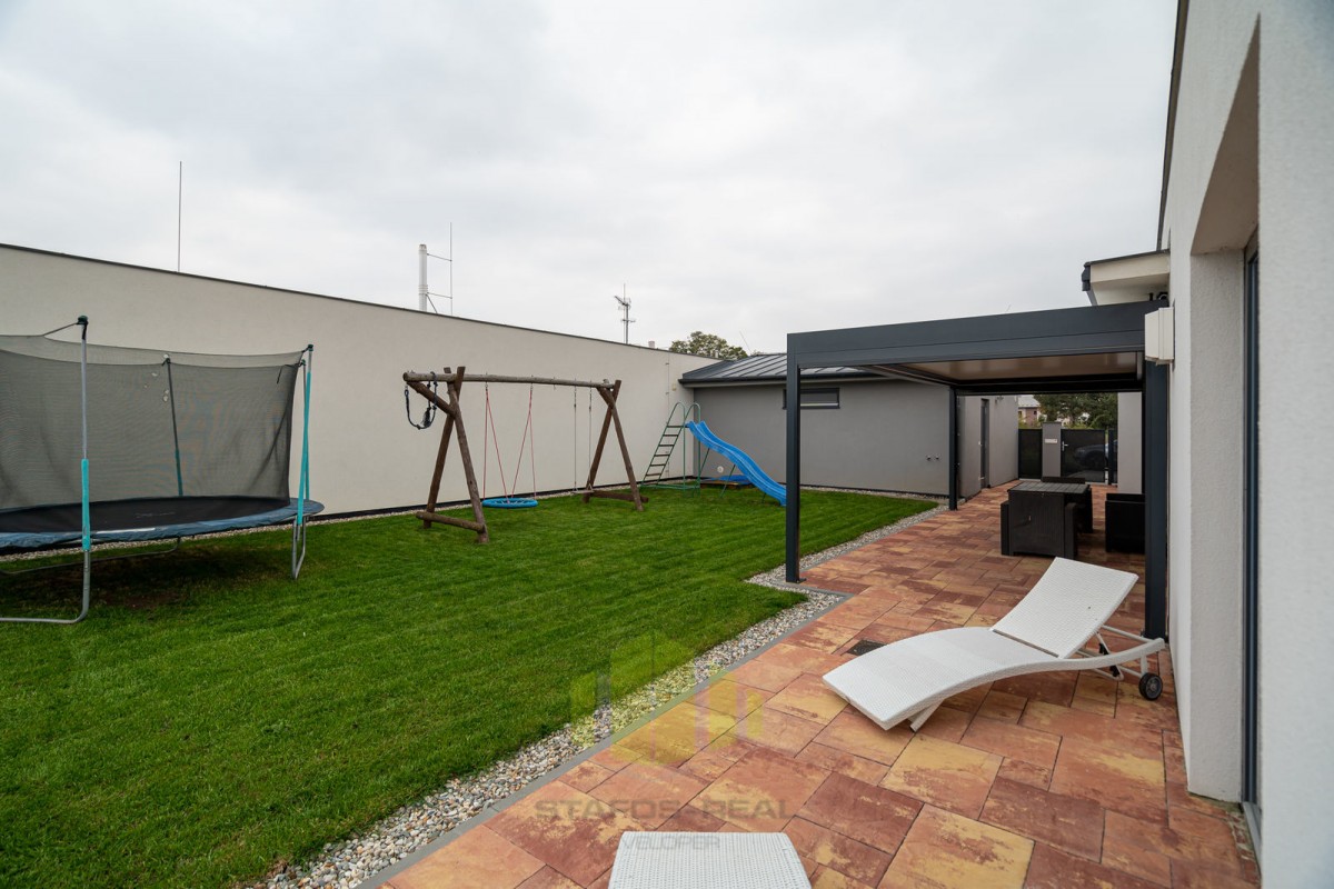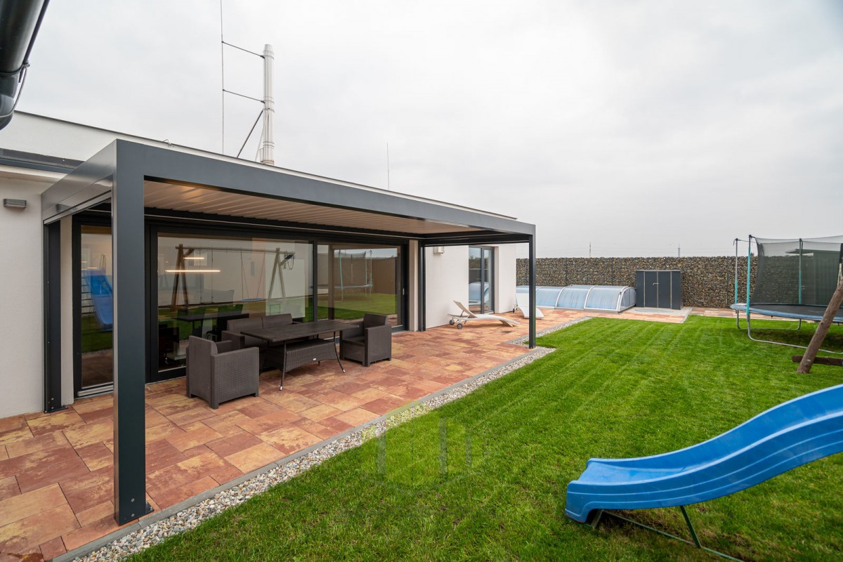 Pro moderní rodinu s vysokými nároky na komfort bydlení 21. století, nabízíme pronájem exklusivního atriového nízkopodlažního domu v nově vzniklé výstavbě na okraji Nedvězí u Olomouce. Samotný dům s plochou 208m2...> o dispozici 4+kk včetně dvojgaráže nabízí zázemí až pro 5 - ti člennou rodinu v dispozičně precizně vymyšleném rozmístění jednotlivých pokojů v rámci domu tak, že dvě ložnice, určené primárně dětem, jsou od manželské ložnice se samostatnou šatnou i vstupem na zahradu, odděleny centrální chodbou a velkoryse prostorově řešeným obývacím pokojem s kuchyňským koutem a krbem, jako dominantou celého prostoru. Z chodby je pak dále přístup do koupelny, sociální zařízení WC, samostatné šatny, technické místnosti a ke vstupu do domu. Ve všech pokojích tv+sat+dat zásuvky. Z obývacího pokoje je přímý vstup do atriové zahrady jak HS posuvnými francouzskými dveřmi, tak samostatnými sousedícími dveřmi z kuchyňské části, přičemž zahrada díky svému uspořádání a poloze skýtá absolutní soukromí pro rodinu a bezpečné hraní dětí. Část zahrady při vstupu do obývacího pokoje vybavena komfortní bio klimatickou pergolou s výsuvnými bočními stěnami a naklápěcí střechou jako ochranou před dotěrným sluncem nebo deštěm. Rádi se koupete? Pak je tu pro Vás připraven komfortní zapuštěný bazén se zastřešením! Vytápění pomocí el. podlahového topení, celý systém topení lze ovládat chytrým telefonem. Za zmínku dále stojí venkovní polohovací hliníkové žaluzie, oplocení zahrady gabionovým plotem, retenční nádrž pro zalévání, atd. Dvojgaráž o ploše 47m2 počítá s parkováním pro dvě auta a dostatkem úložných prostor podél stěn, na zahradě pak pro uložení zahradního nábytku či nářadí k dispozici zahradní domek. V blízkém okolí kompletní občanská vybavenost, dojezd do Olomouce do 3min. Měsíční nájem ve výši 36. 000, - Kč, předpokládané náklady na bydlení do 6. 000, - Kč. Vratná kauce ve výši dvou měsíčních nájmů, odměna RK ve výši jednoho měsíčního nájmu + 21% DPH. Více info a osobní prohlídky po tel. domluvě s makléřem. Volné po domluvě.