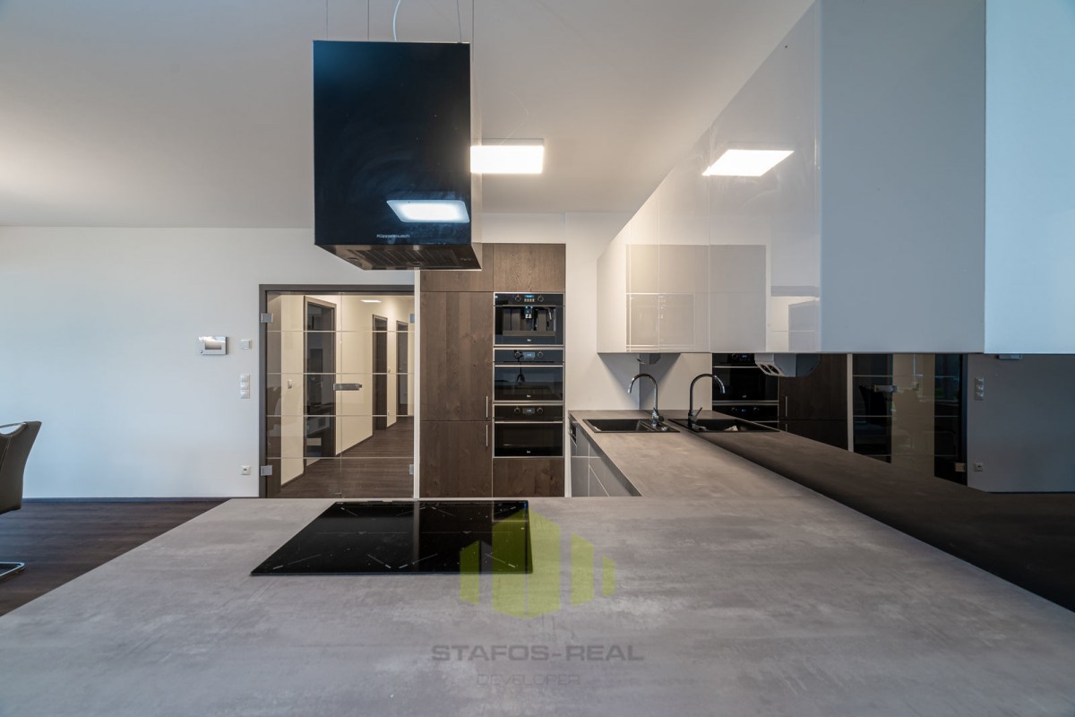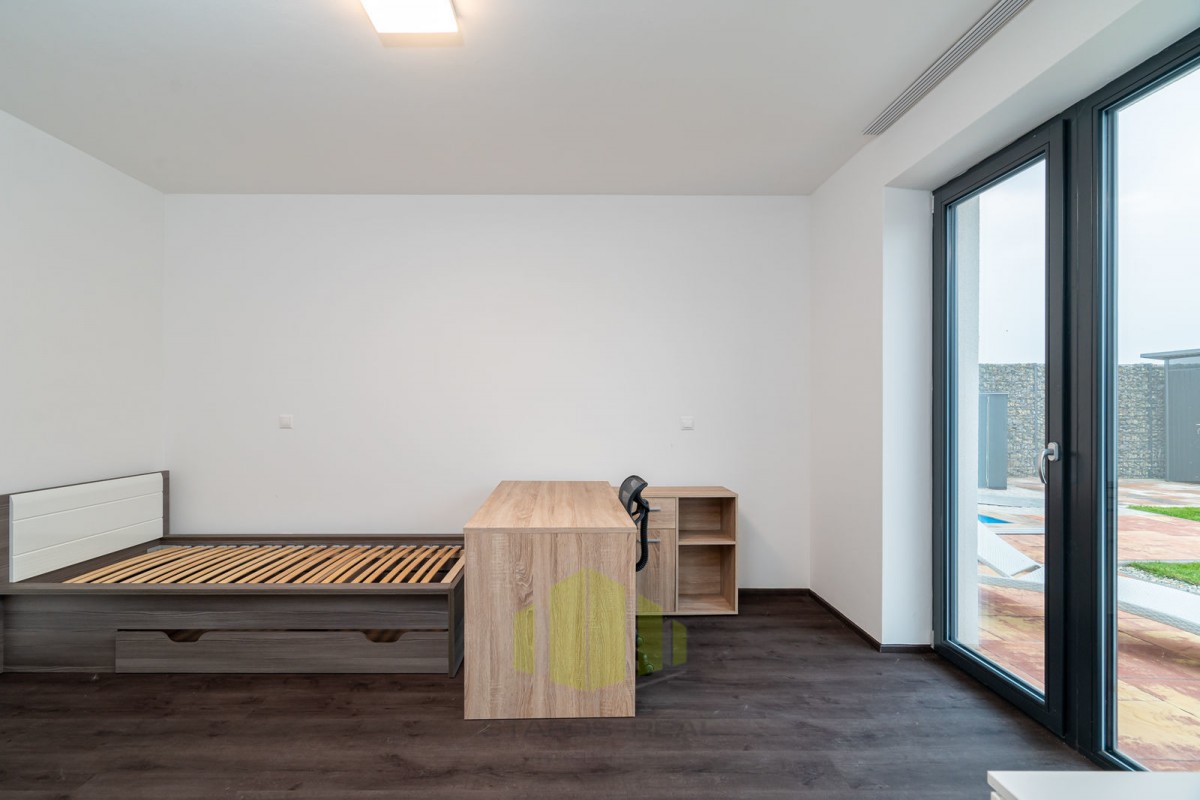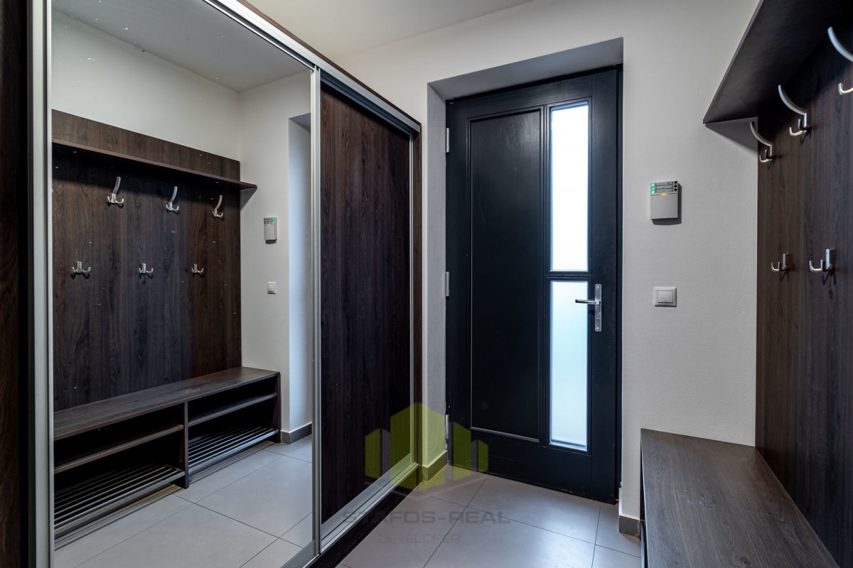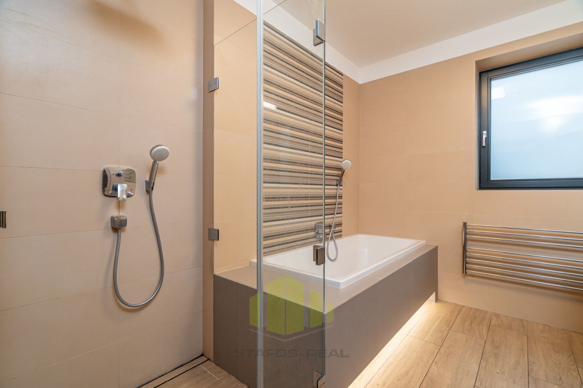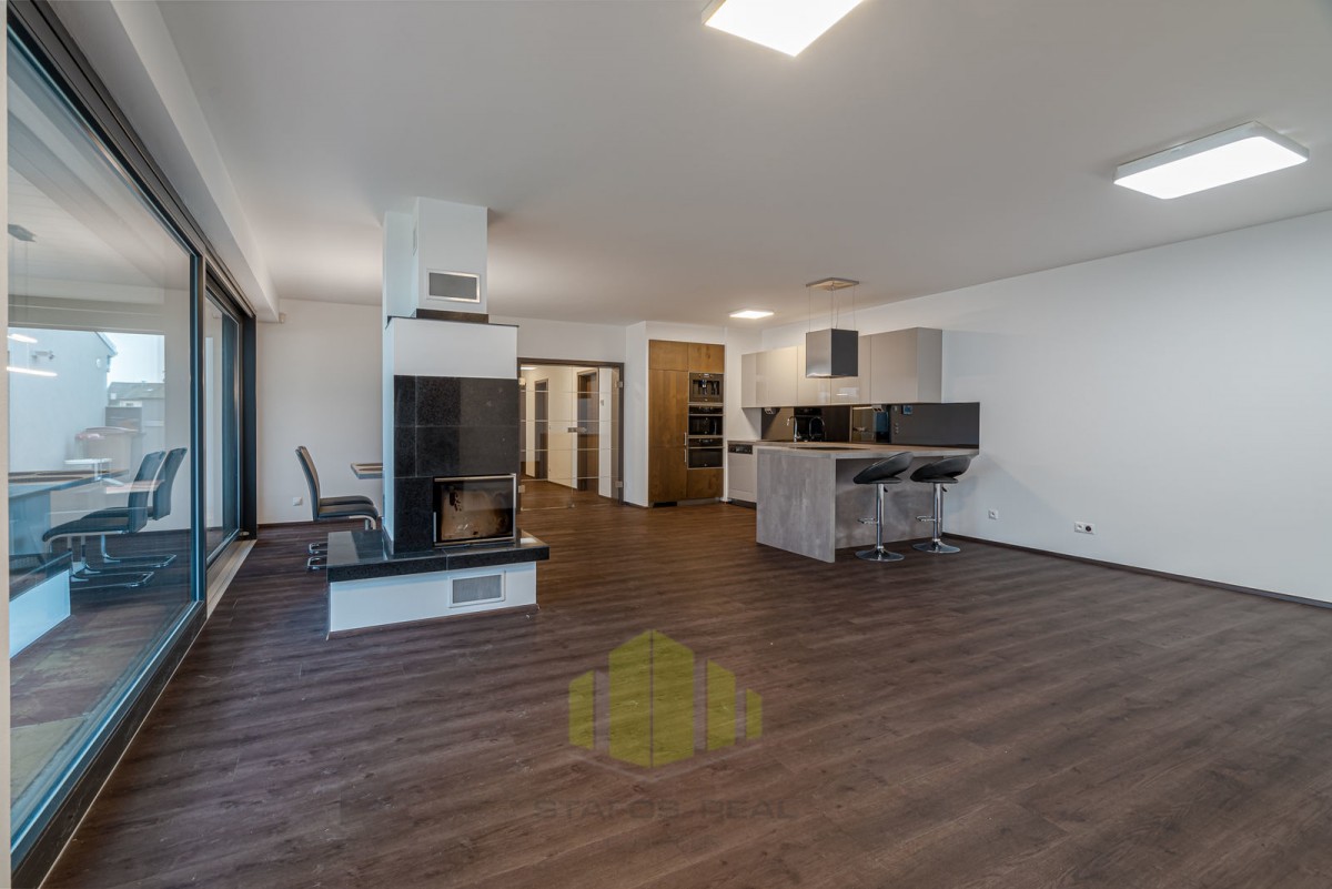 Pro moderní rodinu s vysokými nároky na komfort bydlení 21. století, nabízíme pronájem exklusivního atriového nízkopodlažního domu v nově vzniklé výstavbě na okraji Nedvězí u Olomouce. Samotný dům s plochou 208m2...> o dispozici 4+kk včetně dvojgaráže nabízí zázemí až pro 5 - ti člennou rodinu v dispozičně precizně vymyšleném rozmístění jednotlivých pokojů v rámci domu tak, že dvě ložnice, určené primárně dětem, jsou od manželské ložnice se samostatnou šatnou i vstupem na zahradu, odděleny centrální chodbou a velkoryse prostorově řešeným obývacím pokojem s kuchyňským koutem a krbem, jako dominantou celého prostoru. Z chodby je pak dále přístup do koupelny, sociální zařízení WC, samostatné šatny, technické místnosti a ke vstupu do domu. Ve všech pokojích tv+sat+dat zásuvky. Z obývacího pokoje je přímý vstup do atriové zahrady jak HS posuvnými francouzskými dveřmi, tak samostatnými sousedícími dveřmi z kuchyňské části, přičemž zahrada díky svému uspořádání a poloze skýtá absolutní soukromí pro rodinu a bezpečné hraní dětí. Část zahrady při vstupu do obývacího pokoje vybavena komfortní bio klimatickou pergolou s výsuvnými bočními stěnami a naklápěcí střechou jako ochranou před dotěrným sluncem nebo deštěm. Rádi se koupete? Pak je tu pro Vás připraven komfortní zapuštěný bazén se zastřešením! Vytápění pomocí el. podlahového topení, celý systém topení lze ovládat chytrým telefonem. Za zmínku dále stojí venkovní polohovací hliníkové žaluzie, oplocení zahrady gabionovým plotem, retenční nádrž pro zalévání, atd. Dvojgaráž o ploše 47m2 počítá s parkováním pro dvě auta a dostatkem úložných prostor podél stěn, na zahradě pak pro uložení zahradního nábytku či nářadí k dispozici zahradní domek. V blízkém okolí kompletní občanská vybavenost, dojezd do Olomouce do 3min. Měsíční nájem ve výši 36. 000, - Kč, předpokládané náklady na bydlení do 6. 000, - Kč. Vratná kauce ve výši dvou měsíčních nájmů, odměna RK ve výši jednoho měsíčního nájmu + 21% DPH. Více info a osobní prohlídky po tel. domluvě s makléřem. Volné po domluvě.
