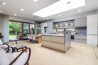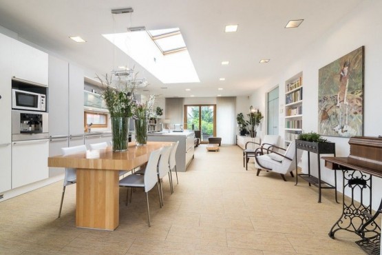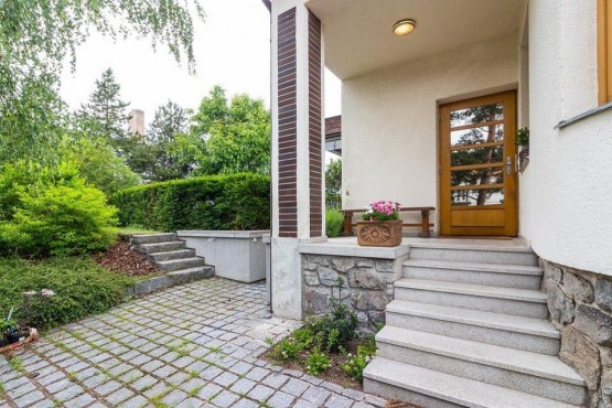 Dominantou domu je skvěle vybavená a prostorná kuchyň s jídelnou v přízemí, z které je přímo vstup na terasu. V přízemí domu se dále nachází dvě ložnice, jedna také se vstupem na terasu, komora a koupelna se sprchovým koutem a vanou. V prvním patře domu je další ložnice, pracovna, koupelna s vanou a pokoj, který má svoji vlastní menší kuchyň a jídelní kout. Podkroví domu je jeden velký prostor, který může být využit jako další ložnice s pracovnou, nebo třeba jako dětský pokoj. Ve sklepě domu se nachází garáž pro dva automobily, prádelna a sklad. Z garáže je vybudován výtah na těžký nákup, který vede přímo do kuchyně. Zahrada domu je vybudována tak, aby byla co nejméně náročná na údržbu a přitom byl zajištěn dostatečný komfort při užívání a relaxaci na zahradě. Je zde terasa, zastřešený bazén s protiproudem, grilovací kout a zahradní domek na nářadí.