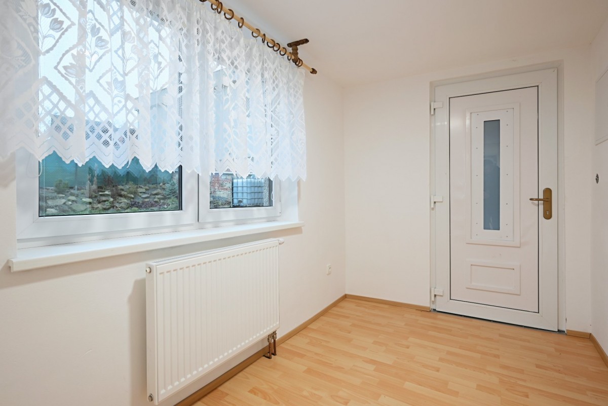 Okna a vstupní dveře plastové, izolační dvojsklo, žaluzie. Interiérové dveře nové plné s fólií.