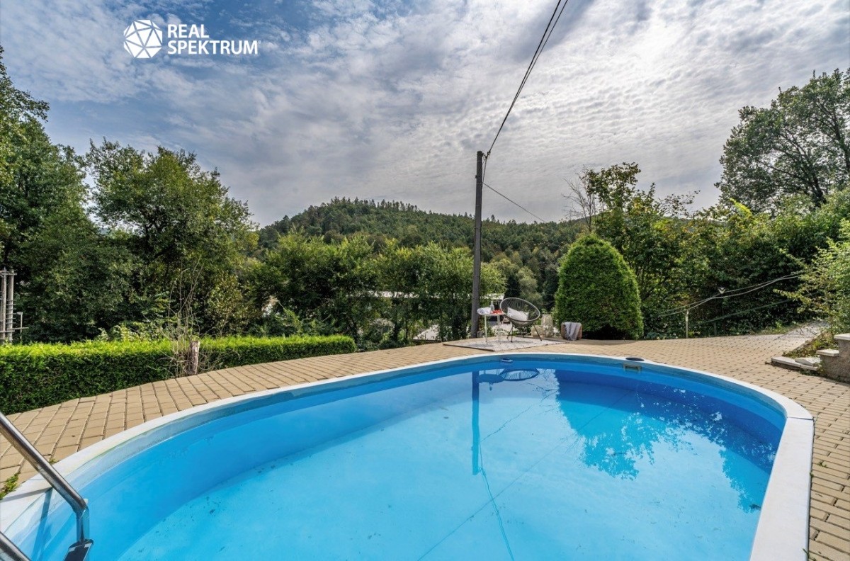 Chata se nachází na vyvýšeném místě s nádherným výhledem do okolní přírody. K dispozici je svažitá zahrádka s vyvýšenými záhony a bazénem, ideální pro relaxaci v letních měsících i drobné zahradničení.
