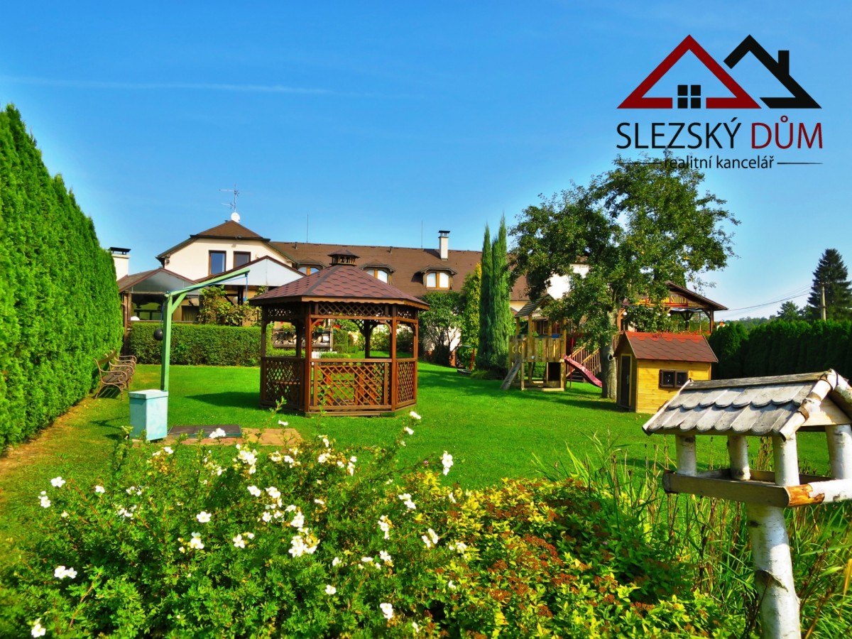 Zahrada oplocená, udržovaná, dětský koutek pro děti, pískoviště, altán (obřadní - svatby), kuželky, perfektní místo pro relax.