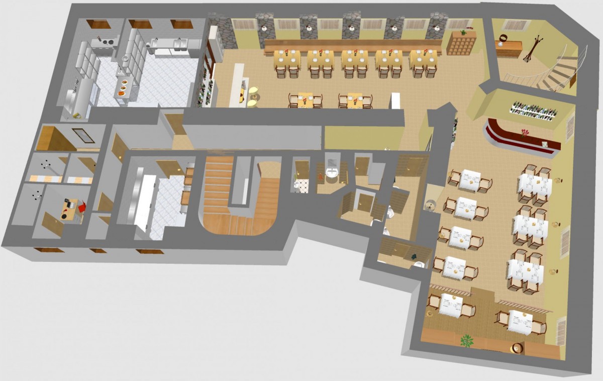 Nebytové prostory jsou umístěny v rohovém secesním domě a mají ...samostatný vstup přímo na rohu domu. Za dveřmi se nachází vstupní místnost a schody do polosuterénu. Nemovitost je kolaudovaná jako restaurace.