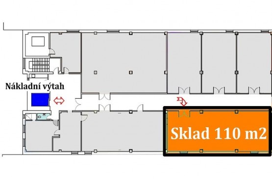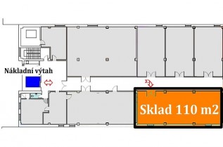 NÁJEM skladového prostoru 110 m2, patro s velkými nákladní výtahy, 2 krát rampa, Praha 9 - Horní Počernice,