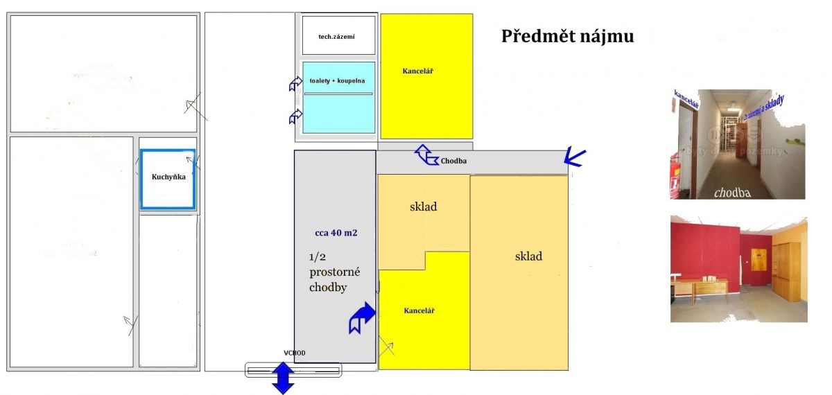 Pronajmeme nebytové prostory na kanceláře a sklady o celkové výměře cca 120 m2.