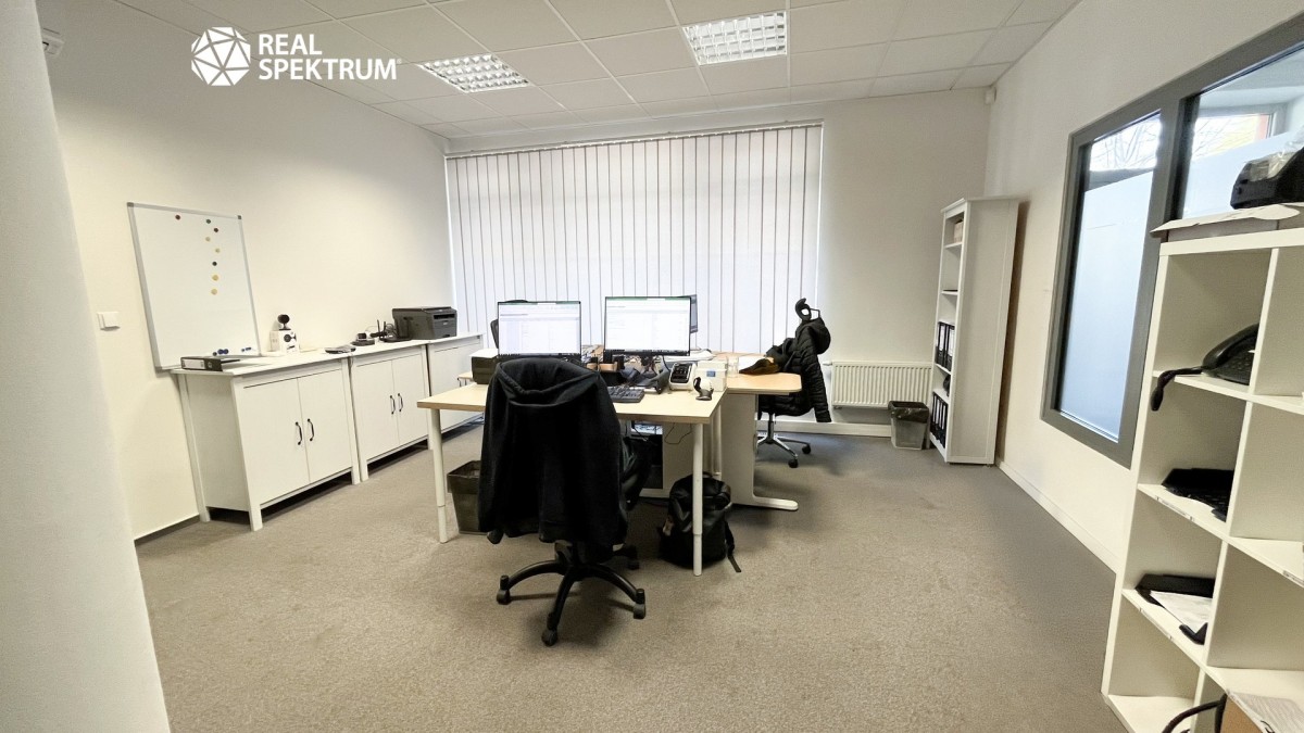 Celková dispozice zahrnuje tři kanceláře a prostorný sklad, což poskytuje ideální kombinaci pro podnikání, které vyžaduje jak administrativní, tak skladovací kapacity. K dispozici jsou také sdílené sociální zařízení a kuchyňka,