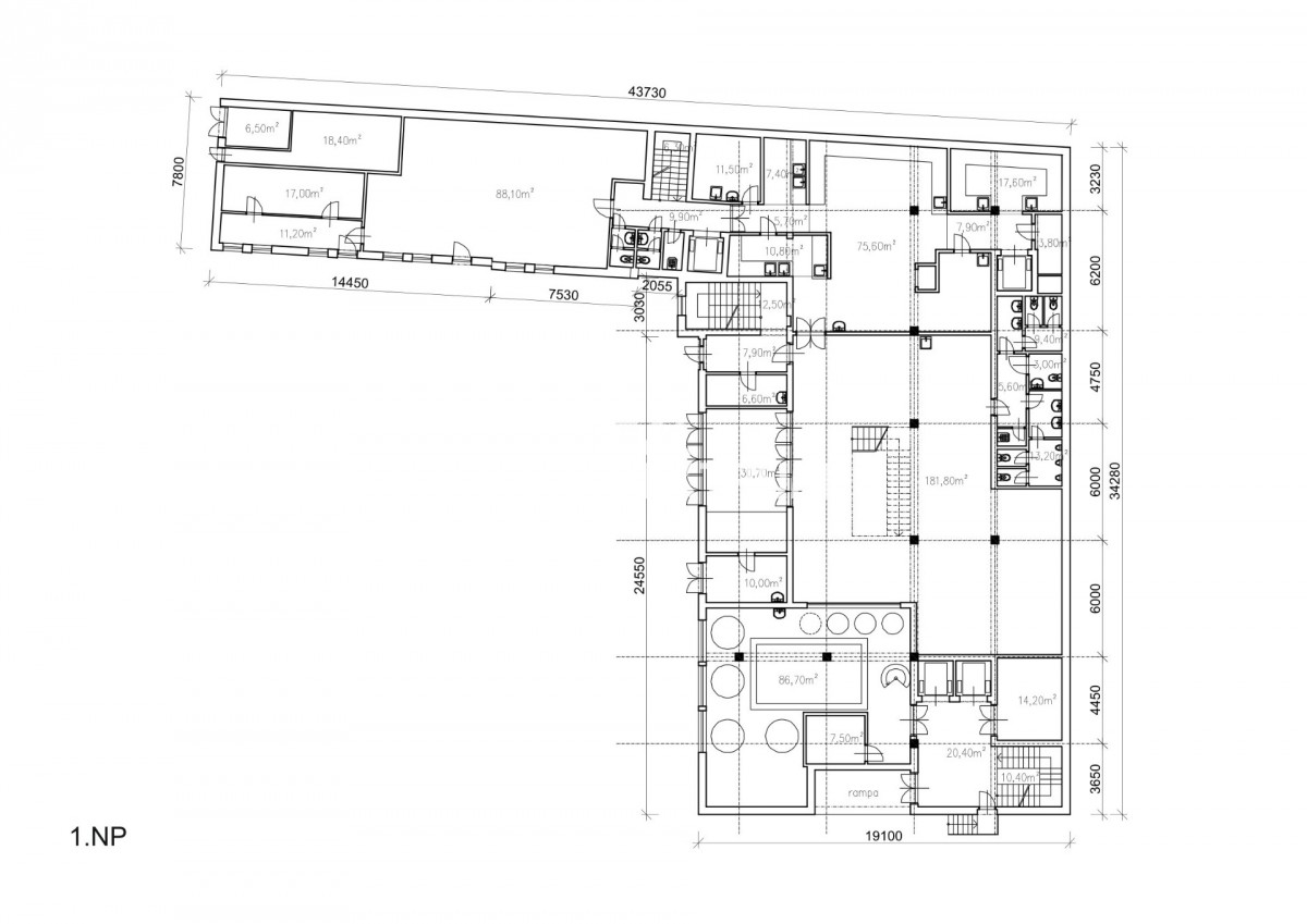 2. NP (druhé nadzemní patro) - cca 400 m2