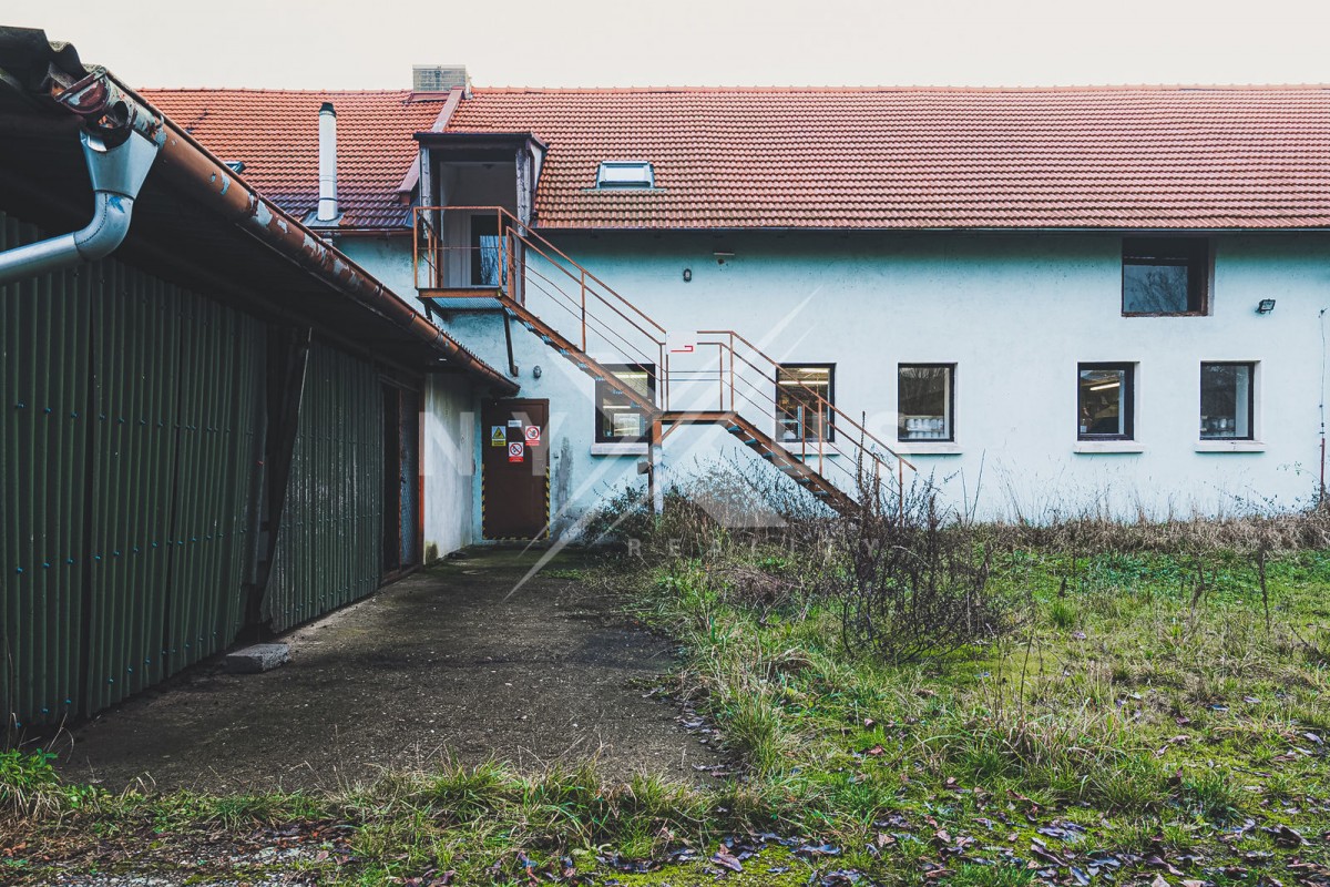 Výměra pozemku, na kterém stojí výr...obní a skladovací budova s kancelářemi je 14 611 m2. Budova je dvoupatrová.