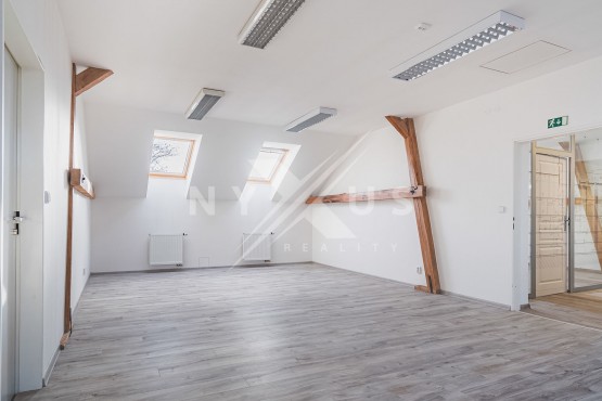 1. patro - jsou zde umístěné 4 kanceláře, další velká místnost tzv "open space", 2 krát sociální zařízení WC, kuchyně a zároveň dva půdní rozlehlé prostory, které je možné taktéž využít jako sklad.