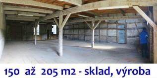 Starší zástavba, kanceláře, sociální zařízení WC, internetové připojení, prostory jsou částečně děleny příčkami, Okna, velká vrata. Objekt částečně lokálně vytápěn, vhodné pro skladování zboží nepodléhající zkáze, drobnou výrobu či stavební sklad. Před halou možno najmout větší manipulační, parkovací a skladové plochy za cenu do 14Kč /m2/měsíc. Velká vjezdová posuvná vrata, zářivkové osvětlení 220/ 380 V.
