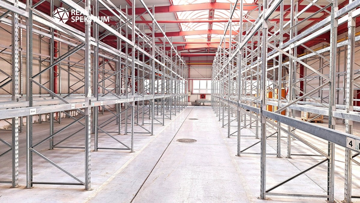 užitná plocha 2. 271 m², výška 5, 4 m, skladová hala , regálový systém pro cca 2000 paletových míst; 3 krát vrata (2 krát přístup přes vyrovnávací můstek na kamion, 1 krát přístup přes rampu); cena 1. 435 Kč/ m²/rok + energie