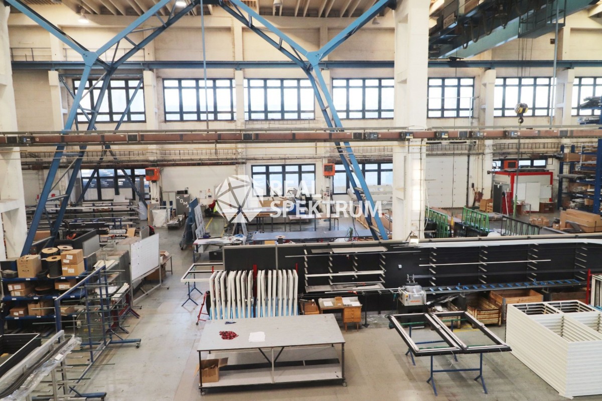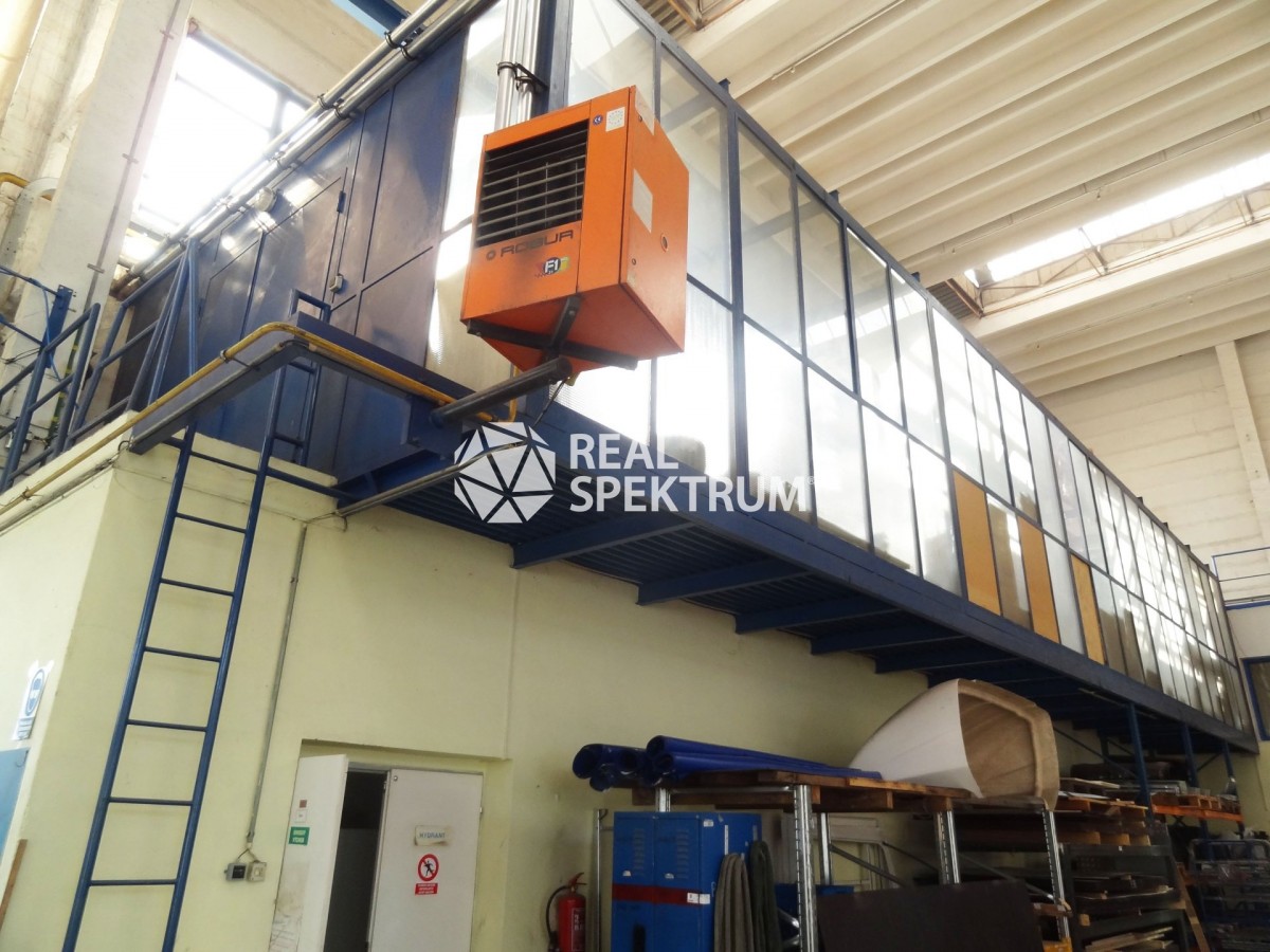Dvoulodní hala 60 x 36m, výška 13, 5 m, 2 x jeřáb 8 t, 12, 5 t, 10 horkovzdušných jednotek ROBUR (plyn).