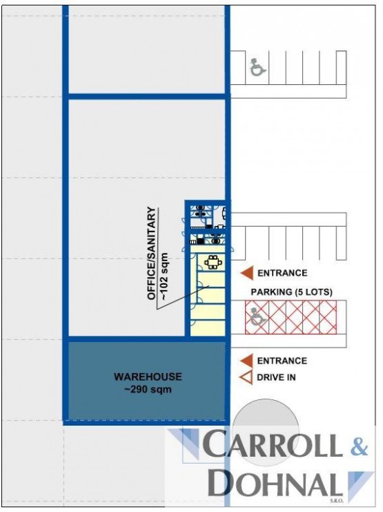 Indikativní cena: 4, 30 eur/m2/měsíc sklad, 8 eur/m2/měsíc kancelářské prostory + servisní poplatky a služby