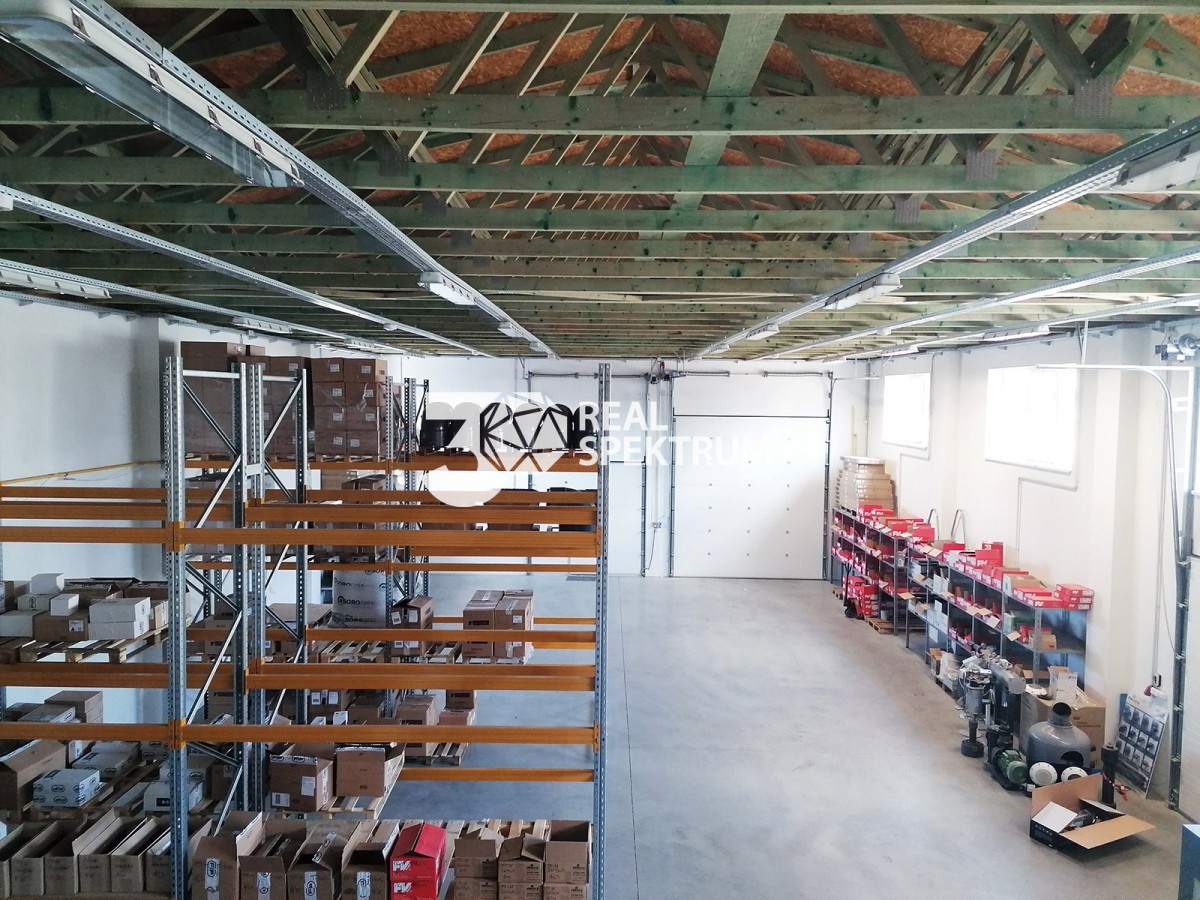 Užitná plocha haly 295 m2, kanceláře a zázemí 135 m2.