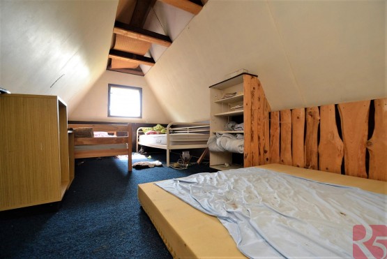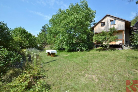 Vedle chaty je ještě menší chatka 30m2, využívaná jako technické zázemí s pokojem pro hosty v patře. Na rohovém pozemku najdete i kolnu a vzrostlý ořech který poskytuje příjemný stín v horkých dnech.